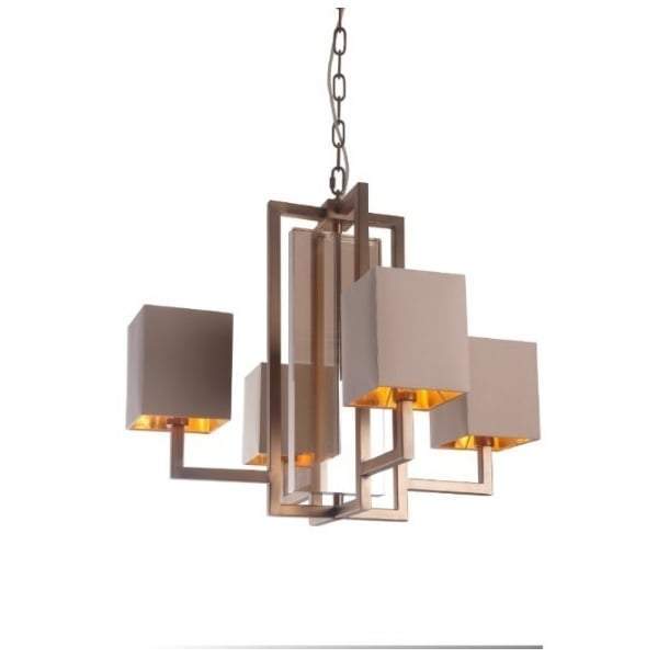 - The Laik Chandelier will make a contemporary difference to all interior stories. With its straight lines, 4 branches and an an antique brass finish it will make a stunning addition to a finished room.