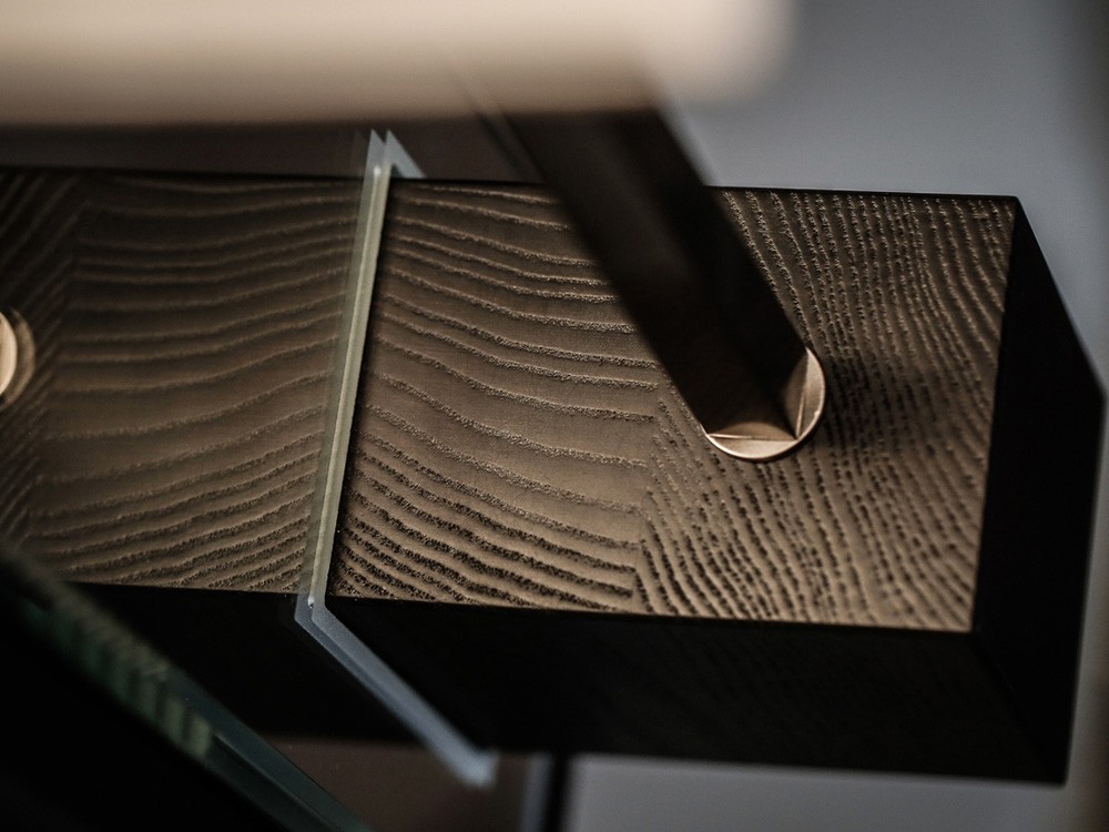 Lala is a quirky modern wall light that revels in optical illusions. Sheathed with the wenge oak frame is a polished mirror and suspended elegant lamp which is sure to invite a second glance from all who pass.