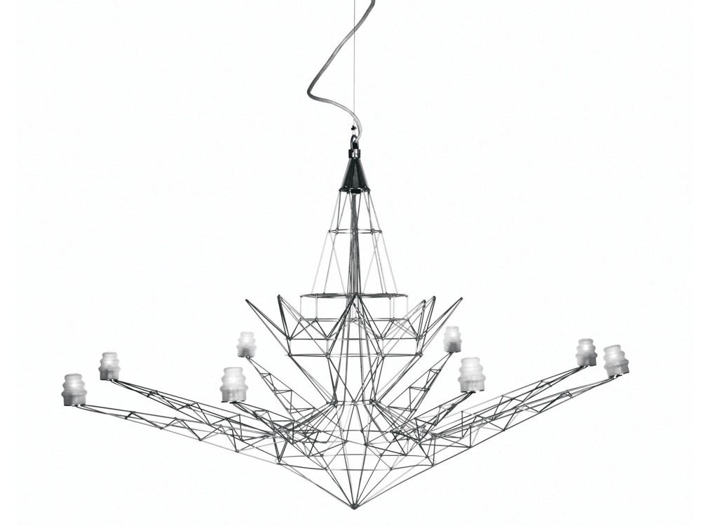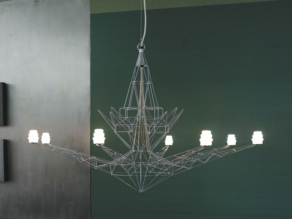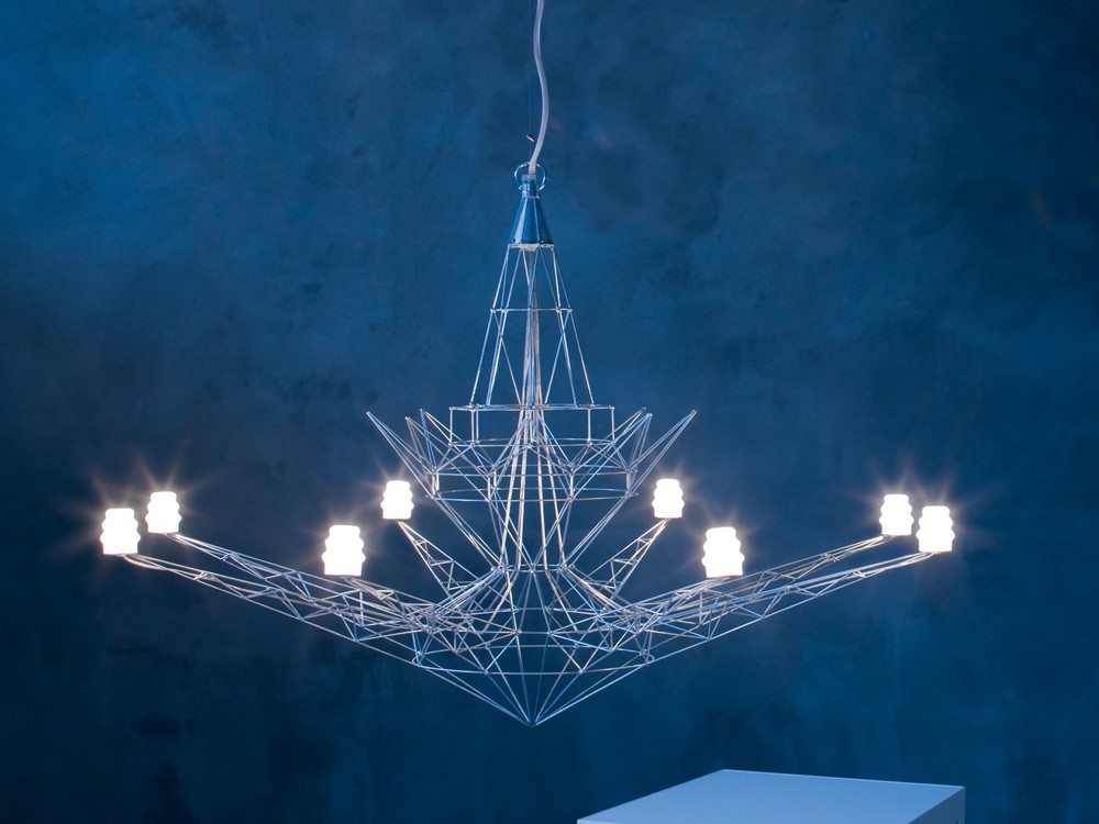 This exquisite hanging pendant lamp is beautifully hand-welded to form a lightweight and geometric frame in anodised metal.