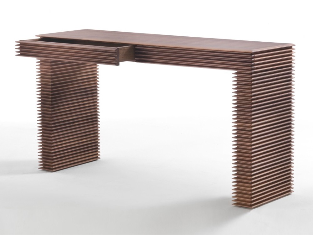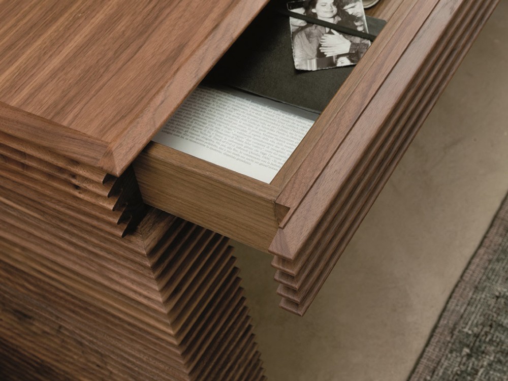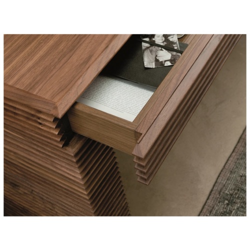 Featuring a slatted design completely crafted from solid Canaletta walnut and with two drawers.