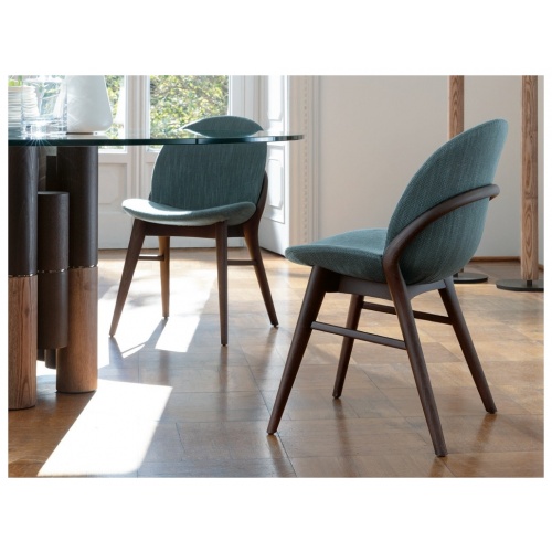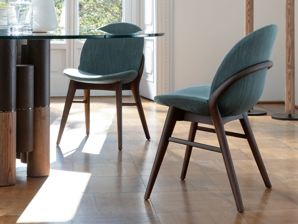 A contemporary seating solution crafted from solid ash wood and upholstered in a luxurious fabric.