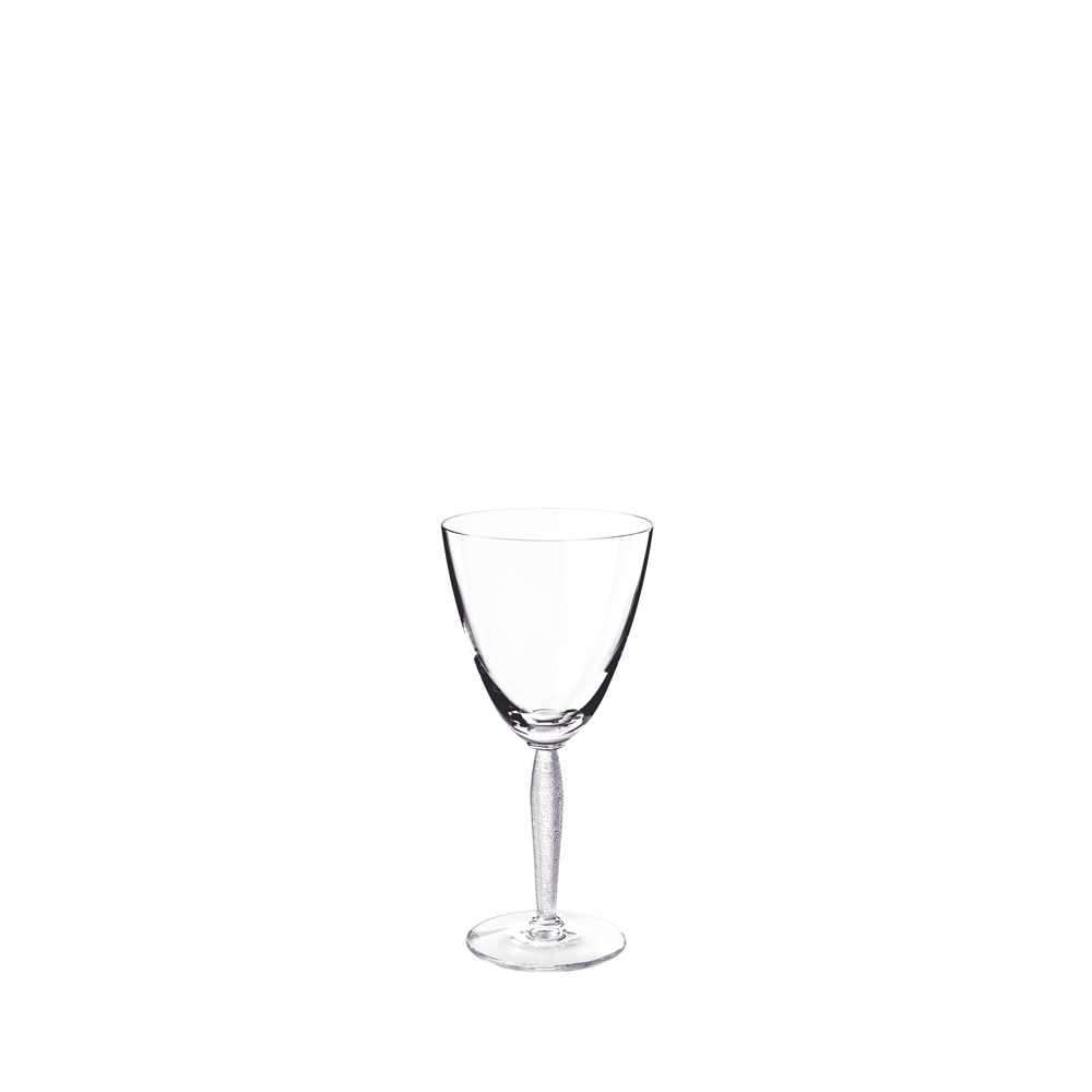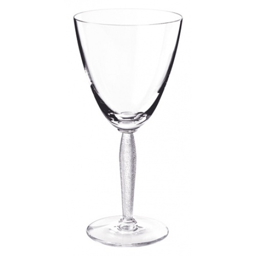 Designed by Marie-Claude Lalique in 1998, Louvre stemware is distinguished by its fine, elegant lines and slender, tapering stems that perfectly complement the classically flared mouth-blown bowl. The satin finish crystal stem is adorned with a network of delicately etched Egyptian hieroglyphs that evoke the classical masterpieces contained in the Louvre Museum (Paris).