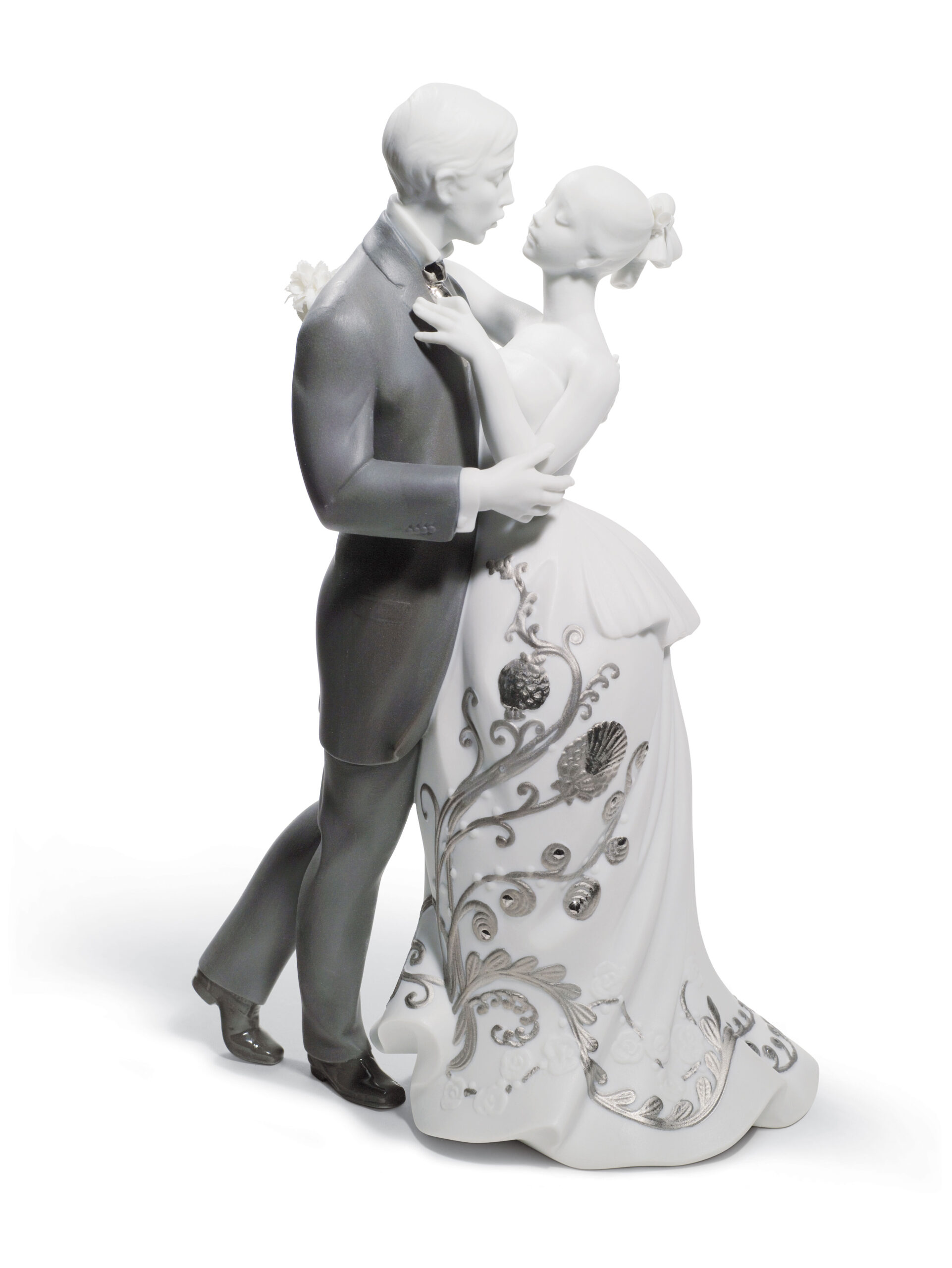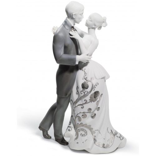 Lovers’ Waltz Couple Figurine. Silver Lustre