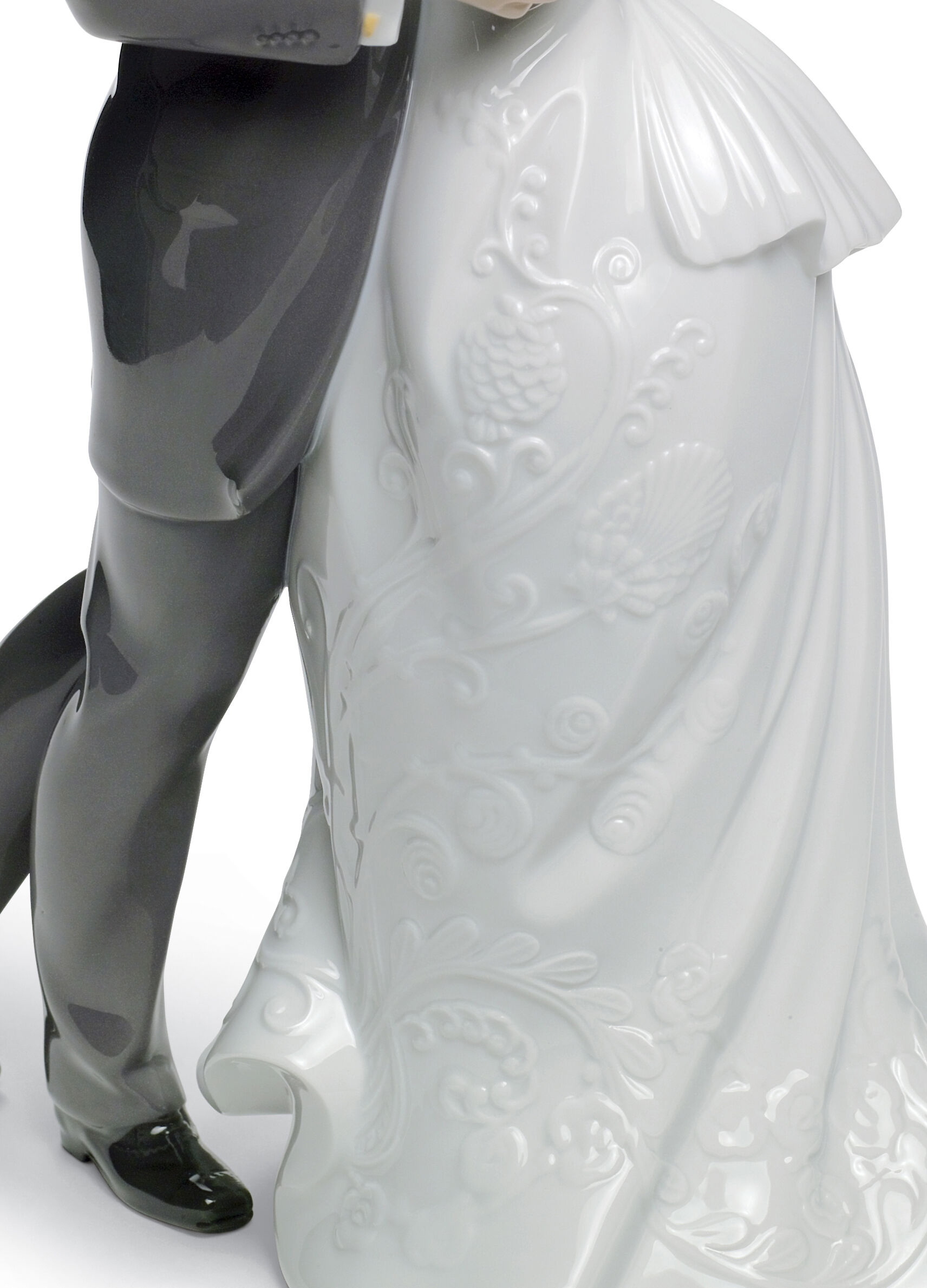 All eyes are on them. The newlyweds begin their new life together by opening the dance with a beautiful waltz. A glossy porcelain piece, decorated in the classic LladrĂ³ palette of pastel colours, ideal as a wedding gift.