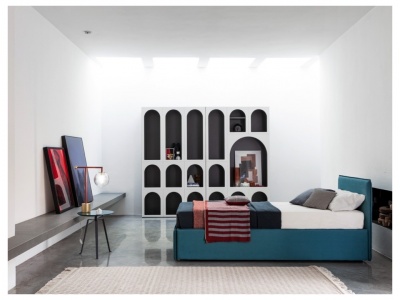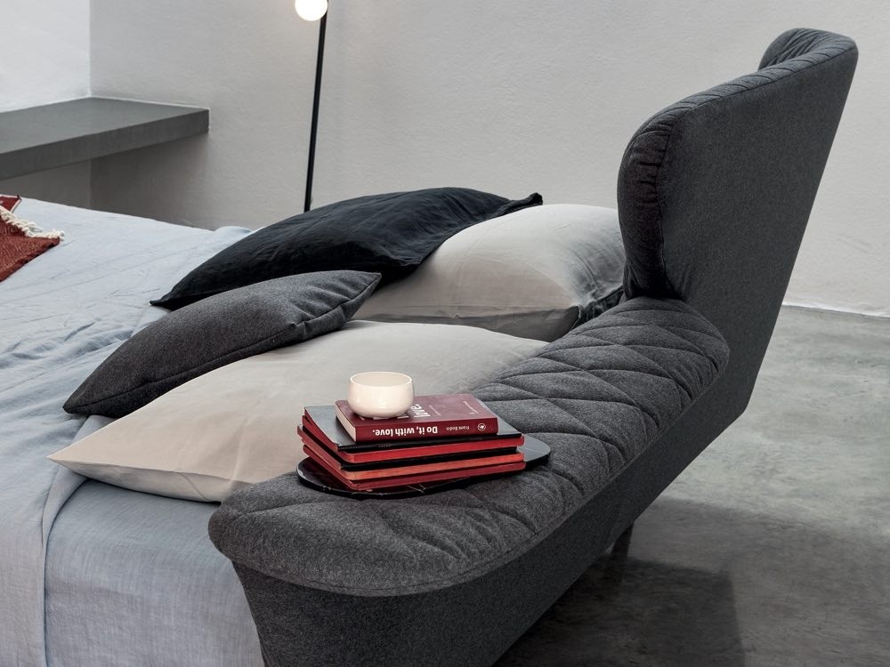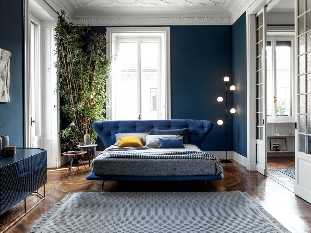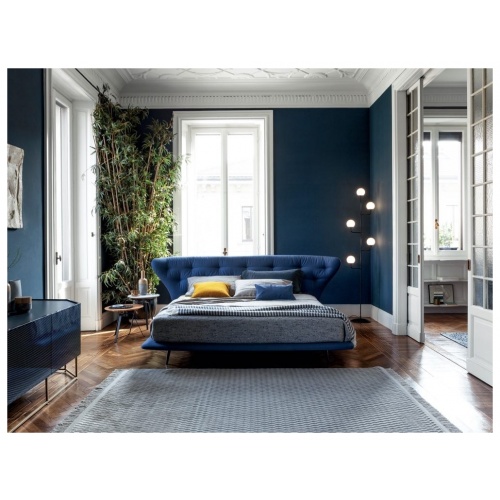 The Lovy bed expands the namesake collection of sofas featuring modern and unusual lines. It captivates and envelops like a hug. It is available in multiple models and fabrics: Lovy bed ego, quilted with a diamond pattern, Lovy bed plus, with a capitonné effect and Lovy bed hi, with a high and straight headboard.