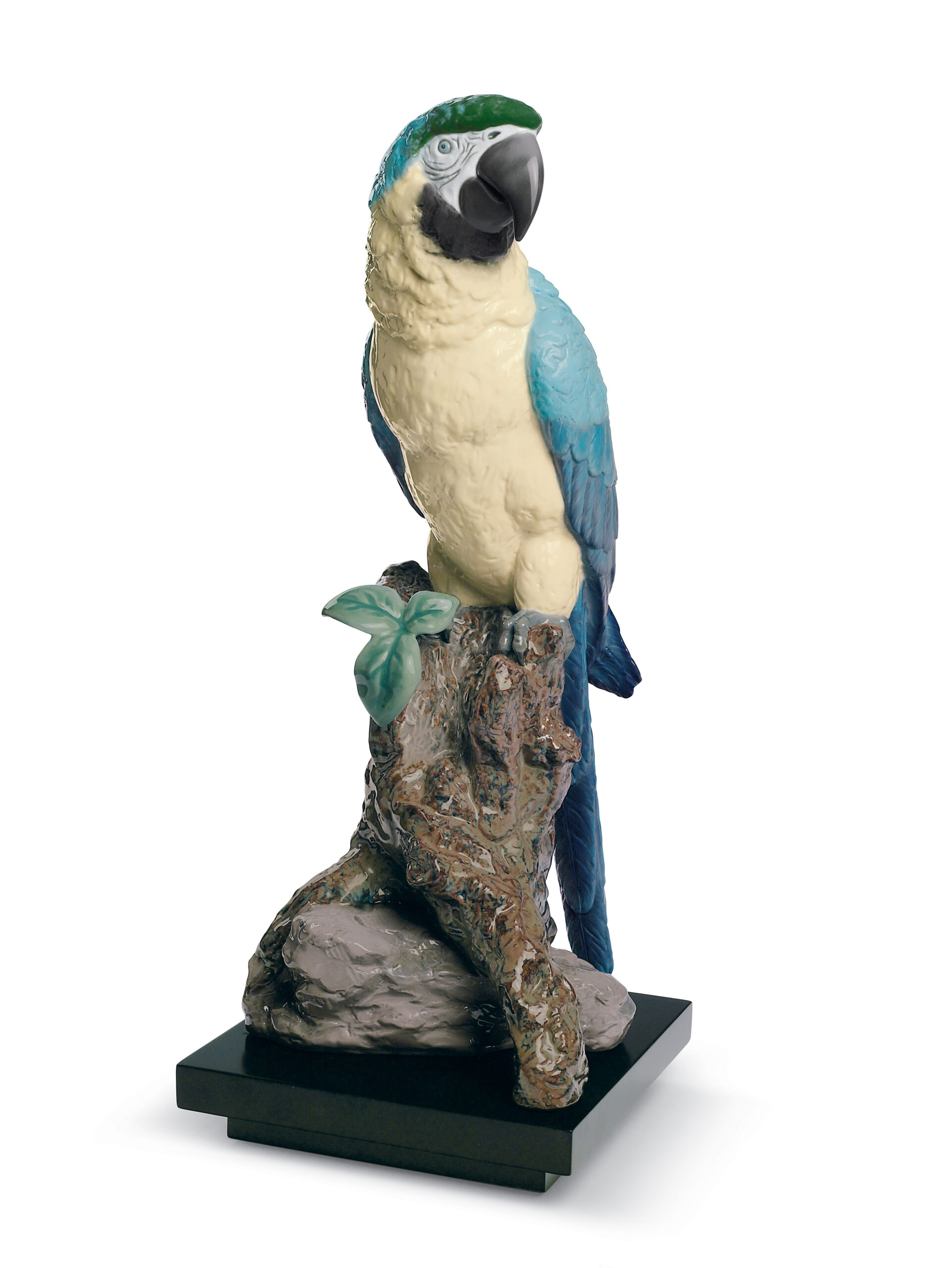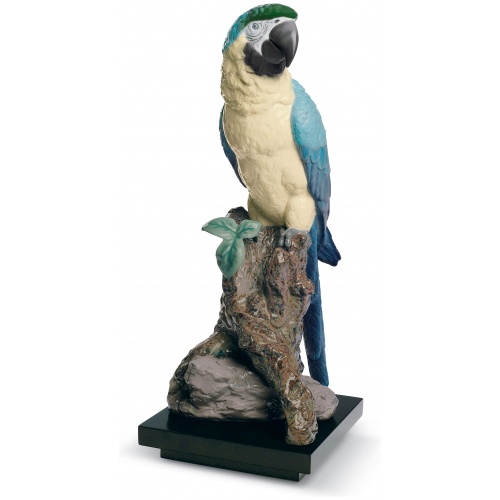A faithful reproduction of this tropical and exotic bird in classic glossy porcelain, but painted with enamels to achieve the strong colours of the natural feathers of this tropical bird. Enamels are used on a large area. For this reason it is probably one of the pieces with the most intense and striking colours. The blue of the back feathers is unique in the range, and a complete divergence from the soft watercolour effect of traditional Lladró classic porcelain. Almost real size
