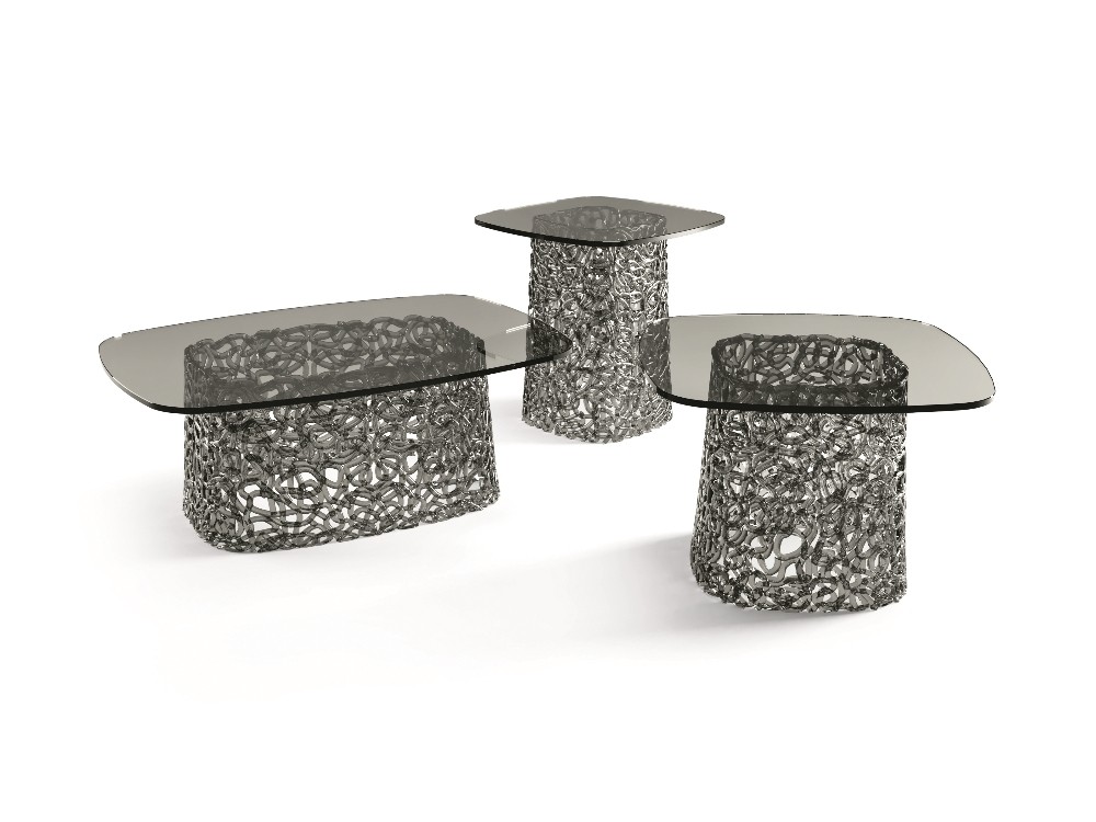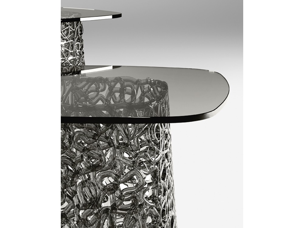 Macramè gloriously interprets the technique of its namesake – the art of knotting string in patterns to make decorative articles – to create a breathtaking coffee table that pays homage to the latest advancements in spun glass engineering.
