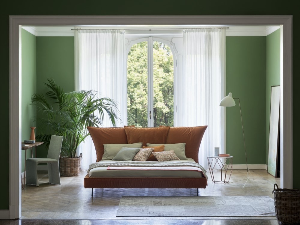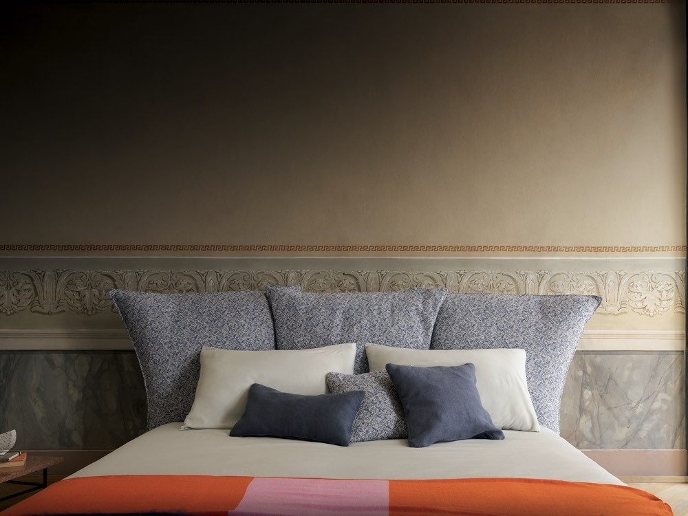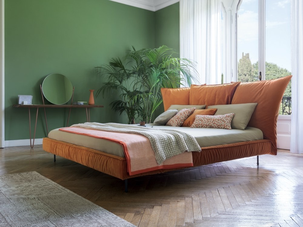 Refined yet contemporary, the Madame C bed is part of a collection that includes sofas, chaise longues and poufs. Comprising three large and slightly overlapping cushions, the bed’s headboard marks the perimeter of an authentic oasis of relaxation, ensuring comfort without sacrificing on style.