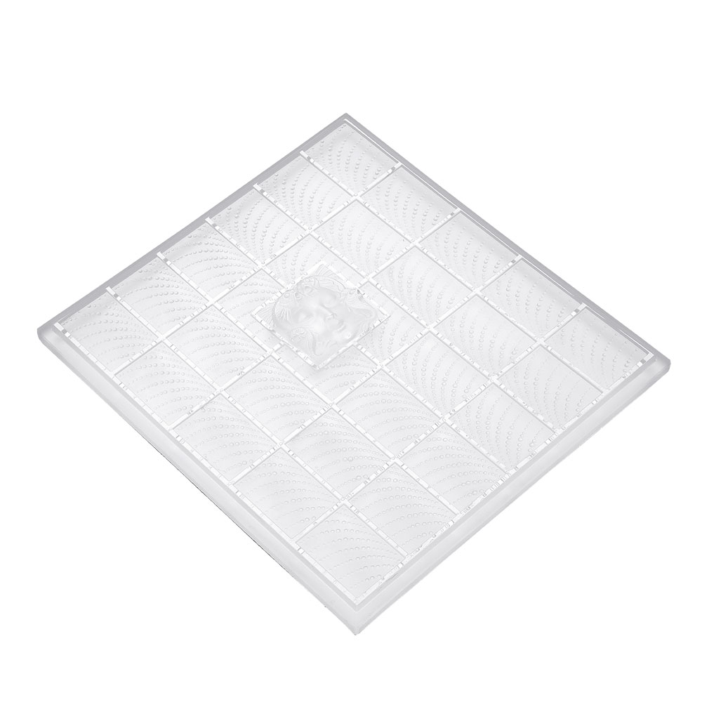 Both classic and avant-garde, this piece of art reveals the face of a mysterious woman with delicate features, surrounded by aquatic fauna. It stands among a mosaic of Coutard panels on which fine transparent crystal droplets spout out on satin finished crystal. Highlighted by the purity of crystal, this element of interior architecture is to be embedded in a wall, a door or to fix on a wall, bringing a touch of style to any interior.