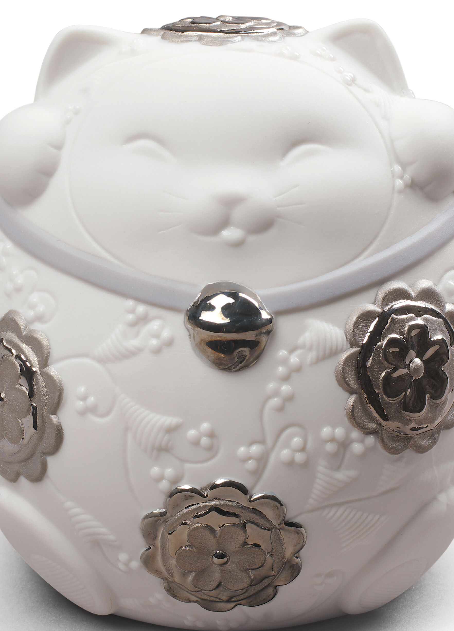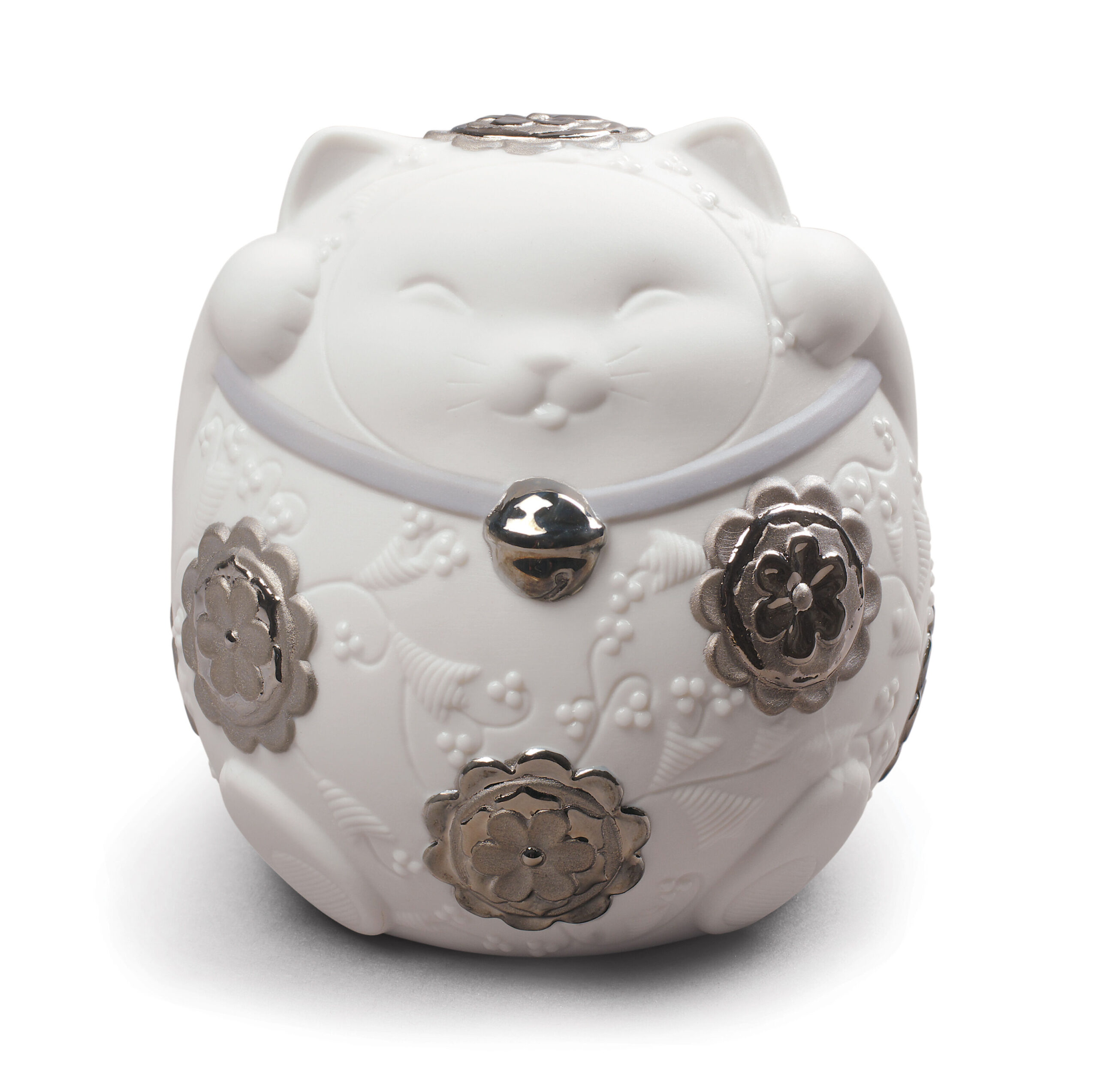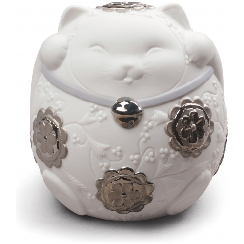 Maneki Neko II Figurine. Silver Lustre