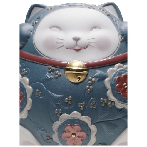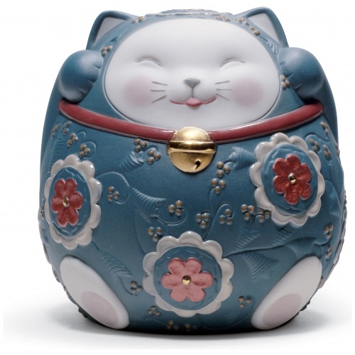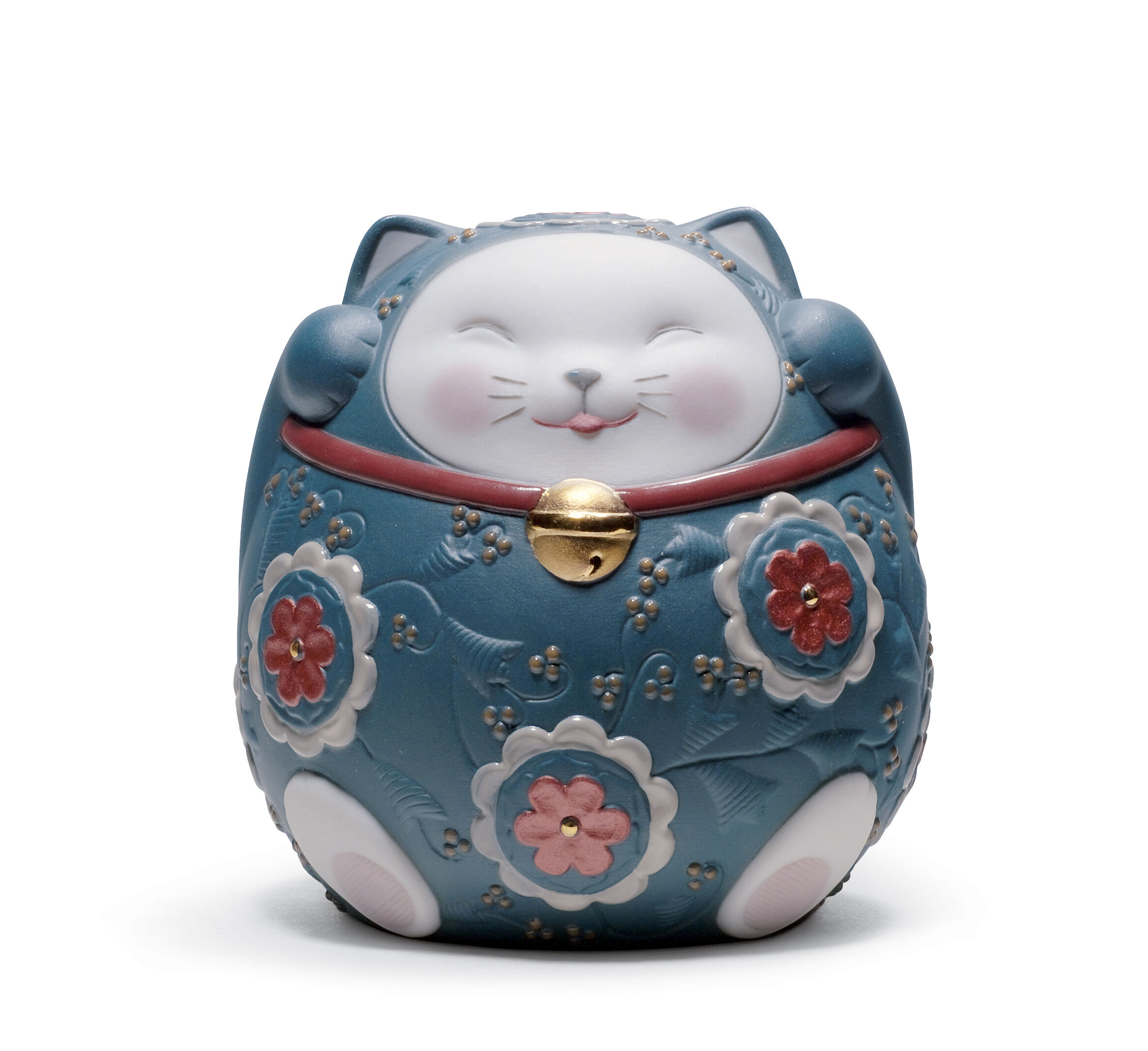 Maneki Neko means the one who beckons or the one who waves. This charming Japanese lucky cat has different meanings depending on which paw it raises. The ornamental motifs decorating the cat are inspired by traditional iconography, in which floral elements take on a particular importance. It makes an ideal gift that brings good fortune to the home or workplace.