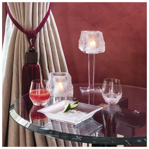 Inspired by the famous design, the Masque de Femme Candleholders combine the purity of the crystal, the simplicity of the lines and the richness of the detail. These pieces with a both classic and contemporary beauty decorate interiors with style and originality to illuminate evening gatherings or private moments.