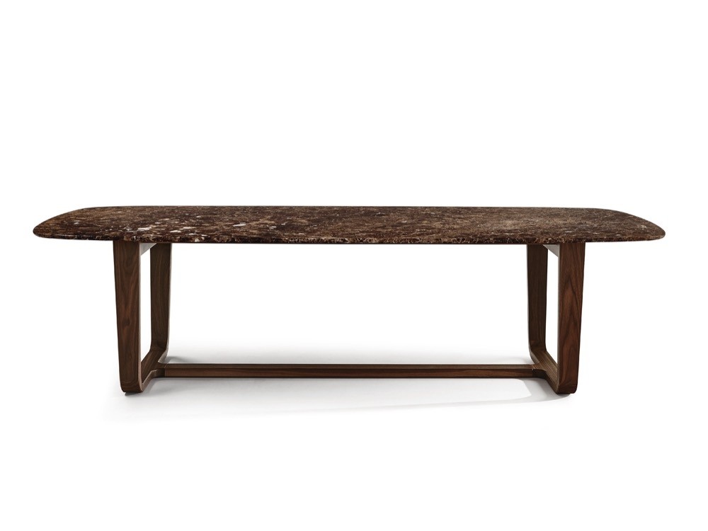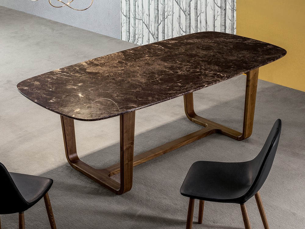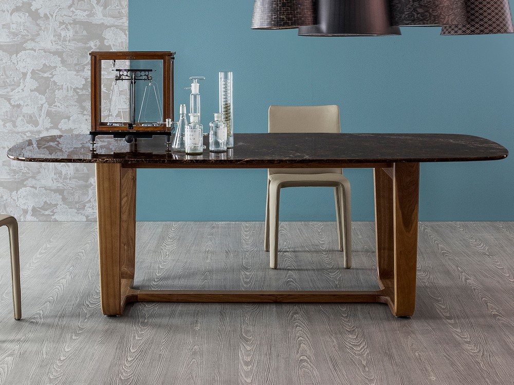 A modern and elegant table, characterised boldly by a merger of styles, geometric shapes and materials that create a new dialogue between aesthetic balance and original appeal.