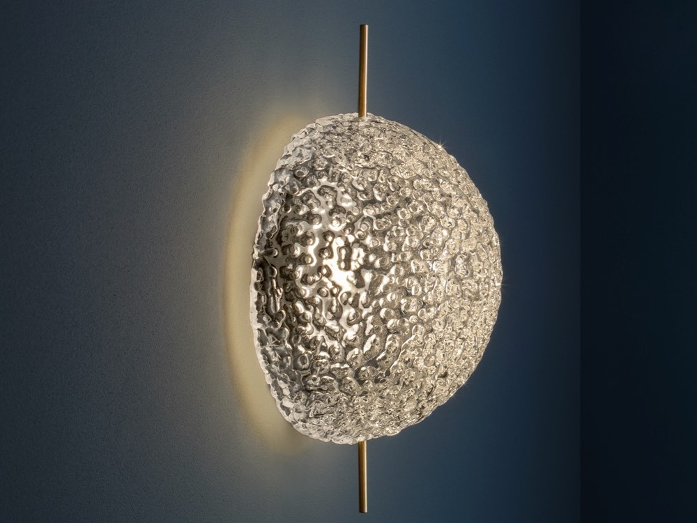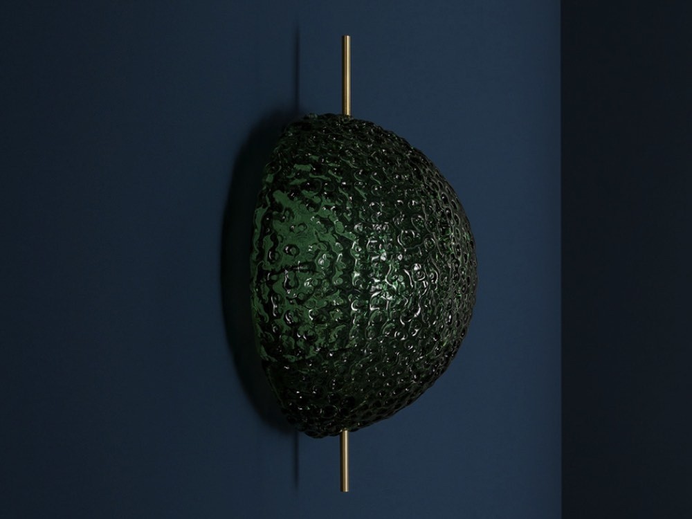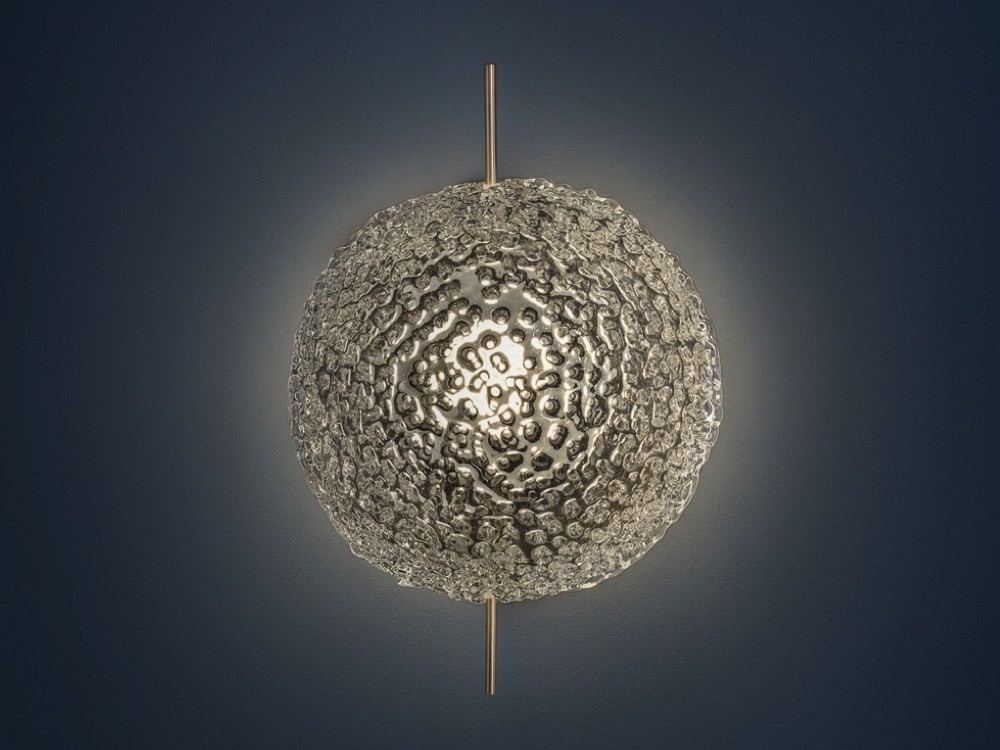 Medousê is a stunning, jewel-like collection of lights suitable for use indoors or out. Their ethereal glow is indebted to the handblown glass shell which is textured by ripples and indents.