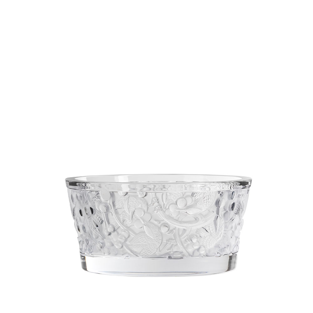 In 1928, René Lalique designed the Merles & Raisins decorative panels, originally in created in pressed glass on a silver background and adorned the Cuban mahogany woodwork of the legendary Orient Express. Today, the Lalique Studio reinterprets this emblematic creation, in new expressions through vases and a bowl. The precious cultural heritage of the House thus comes to life in very contemporary shapes.