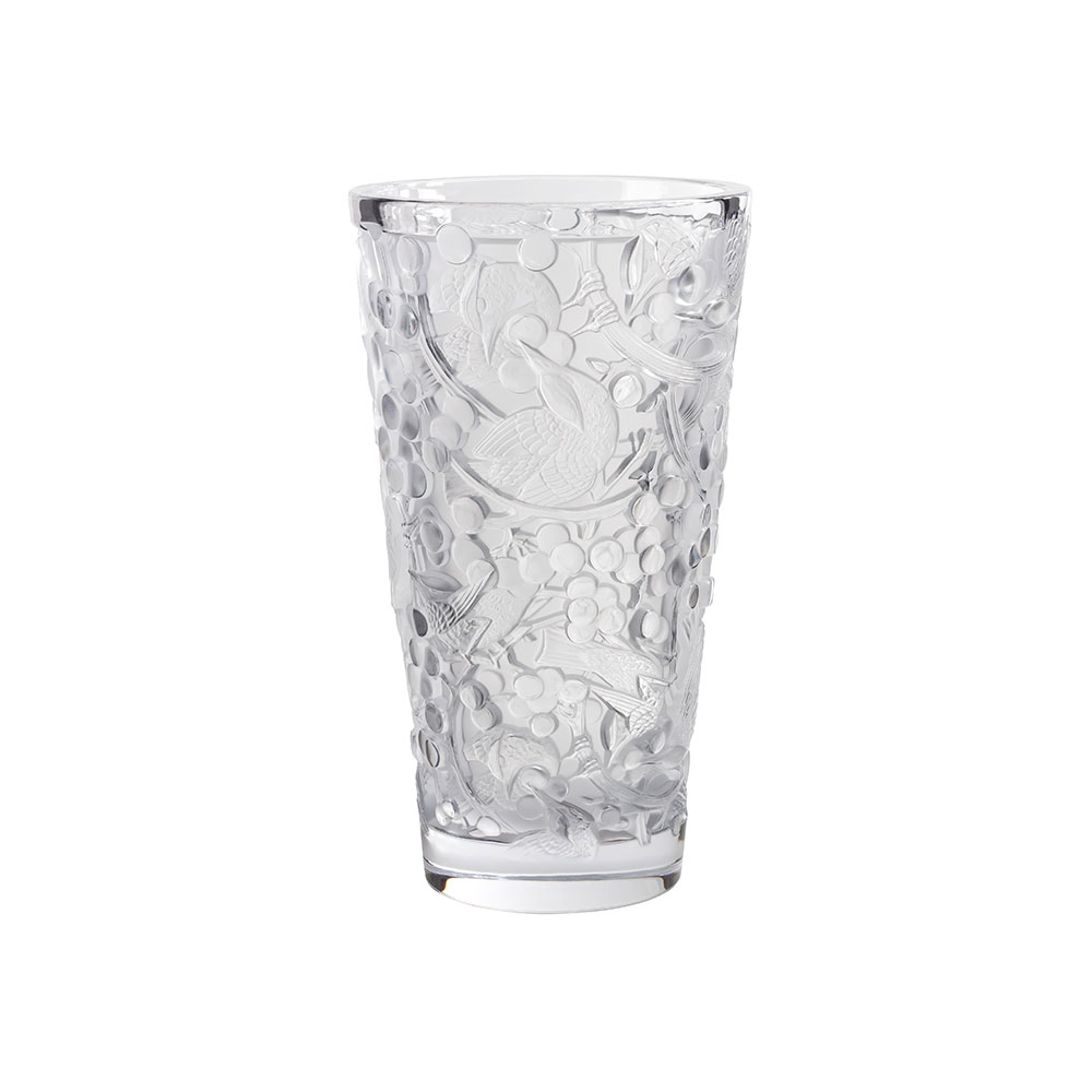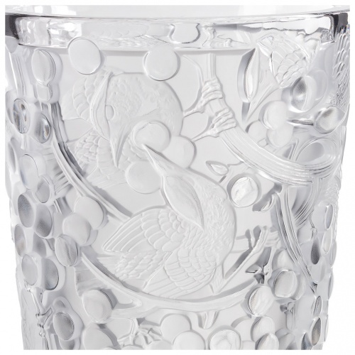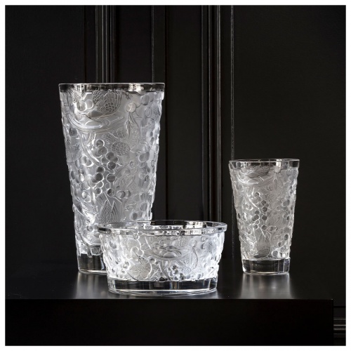 In 1928, René Lalique designed the Merles & Raisins decorative panels, originally in created in pressed glass on a silver background and adorned the Cuban mahogany woodwork of the legendary Orient Express. Today, the Lalique Studio reinterprets this emblematic creation, in new expressions through vases and a bowl. The precious cultural heritage of the House thus comes to life in very contemporary shapes.