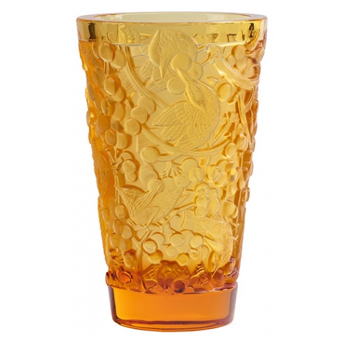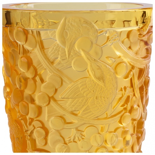In 1928, René Lalique designed the Merles & Raisins decorative panels, originally in created in pressed glass on a silver background and adorned the Cuban mahogany woodwork of the legendary Orient Express. Today, the Lalique Studio reinterprets this emblematic creation, in new expressions through vases and a bowl. The precious cultural heritage of the House thus comes to life in very contemporary shapes.