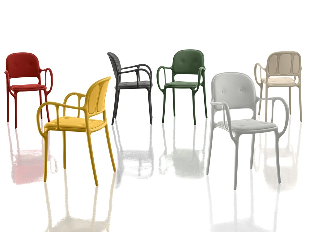 Designed by Jaime Hayón for edgy manufacturer Magis, the Milà outdoor chair features a simple curved frame crafted from polypropylene & glass fibre to a silky finish available in 6 colours.