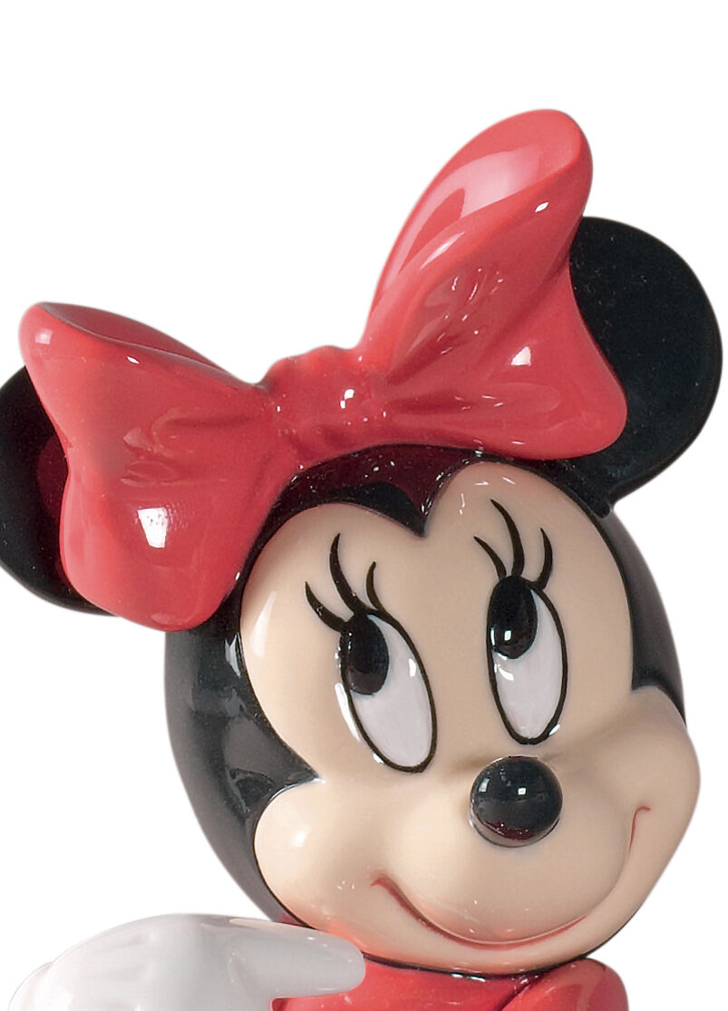 If there is one animated character of all time that endures in the hearts of children around the world, it’s Mickey Mouse. And beside the most famous mouse in the world has always been his inseparable companion, the adorable Minnie. Together they debuted in 1928 in what today we know to be the Disney’s first undisputed success. The flirtatious Minnie Mouse is the star in this piece that takes its place in the Disney collection by Lladró. Made in gloss porcelain, decorated in vibrant colours and with her characteristic white gloves. A piece handmade in Valencia, Spain.
