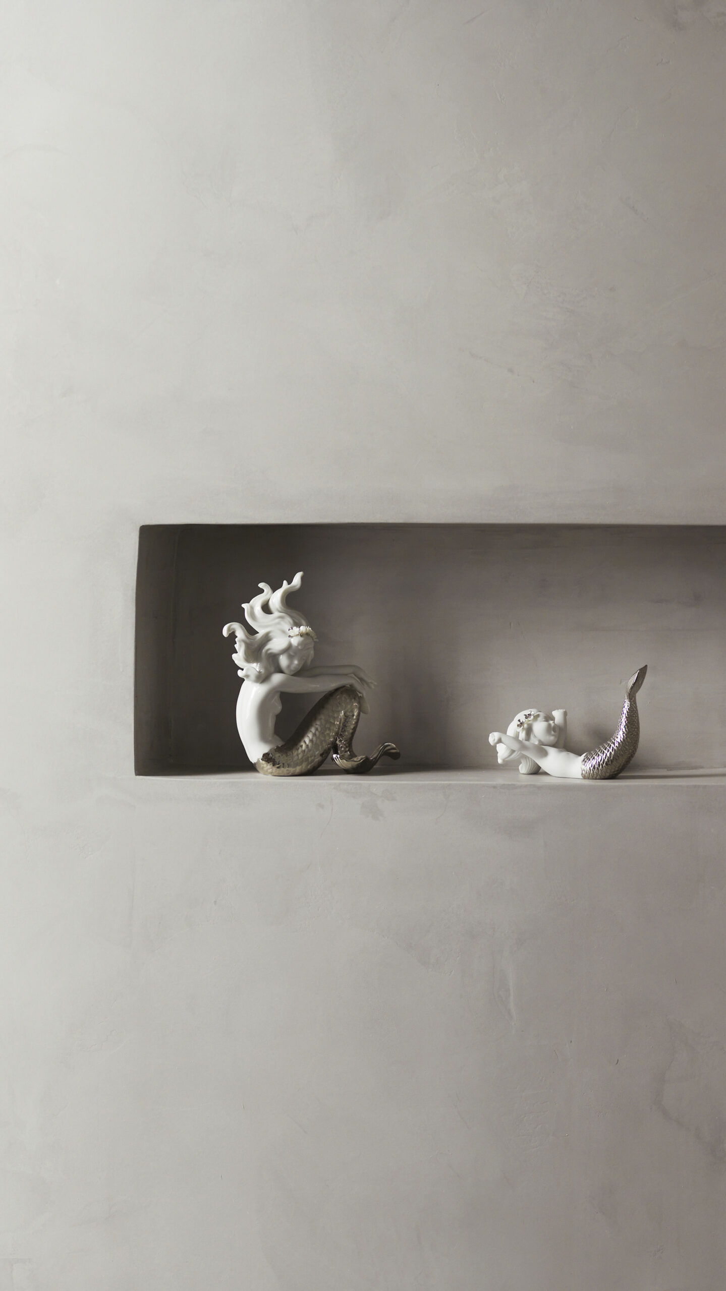 Of all the mythological beings, none have captured the human imagination quite like the mermaid. These enchanting creatures evoke fascinating marine worlds and wonderful adventures in the depths. A glossy porcelain piece, decorated in soft pastel colours and delicate flowers, ideal as a gift, collectible or decoration.