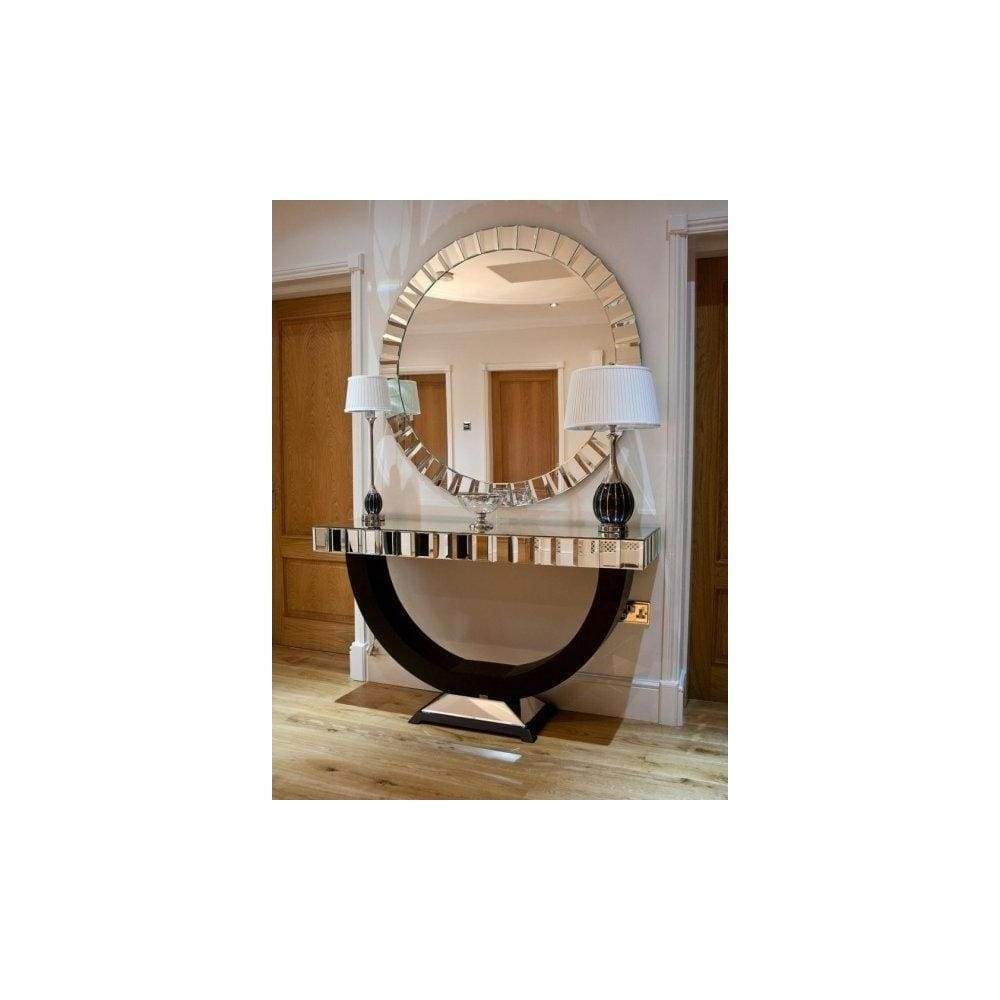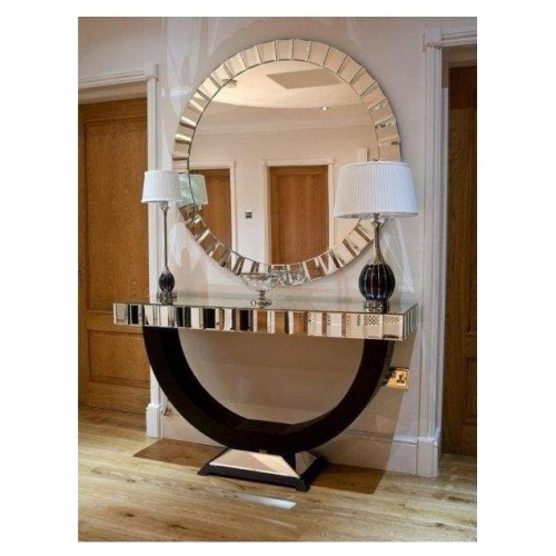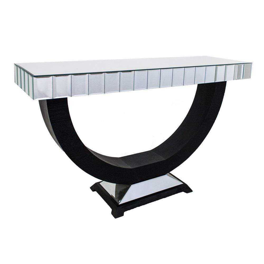 - This very modern and stylish piece would make a statement in any brave and outspoken interior. The mirrored surfaces bounce light around a room from its reflections and offers space and light around the room. Its unique U-shaped design is also complimented by a smaller side table. Please see the range for full details