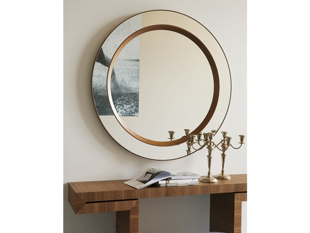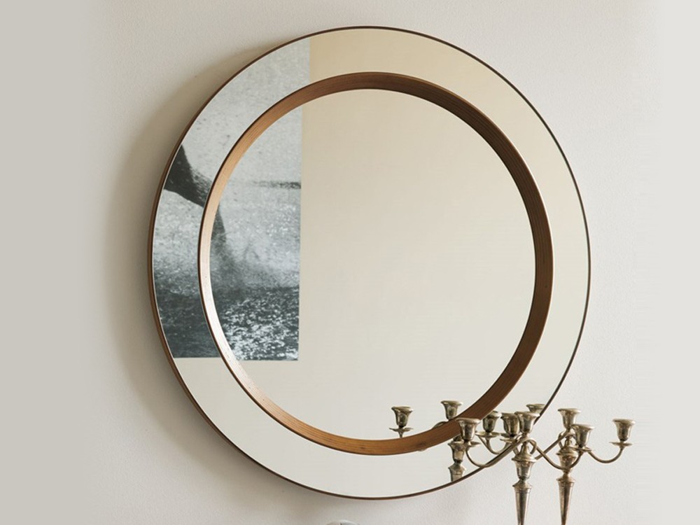 Designed by T. Colzani for luxury Italian brand Porada, the Miss Tondo wall mirror features a stunning clear glass mirrored face with details in canaletta walnut.