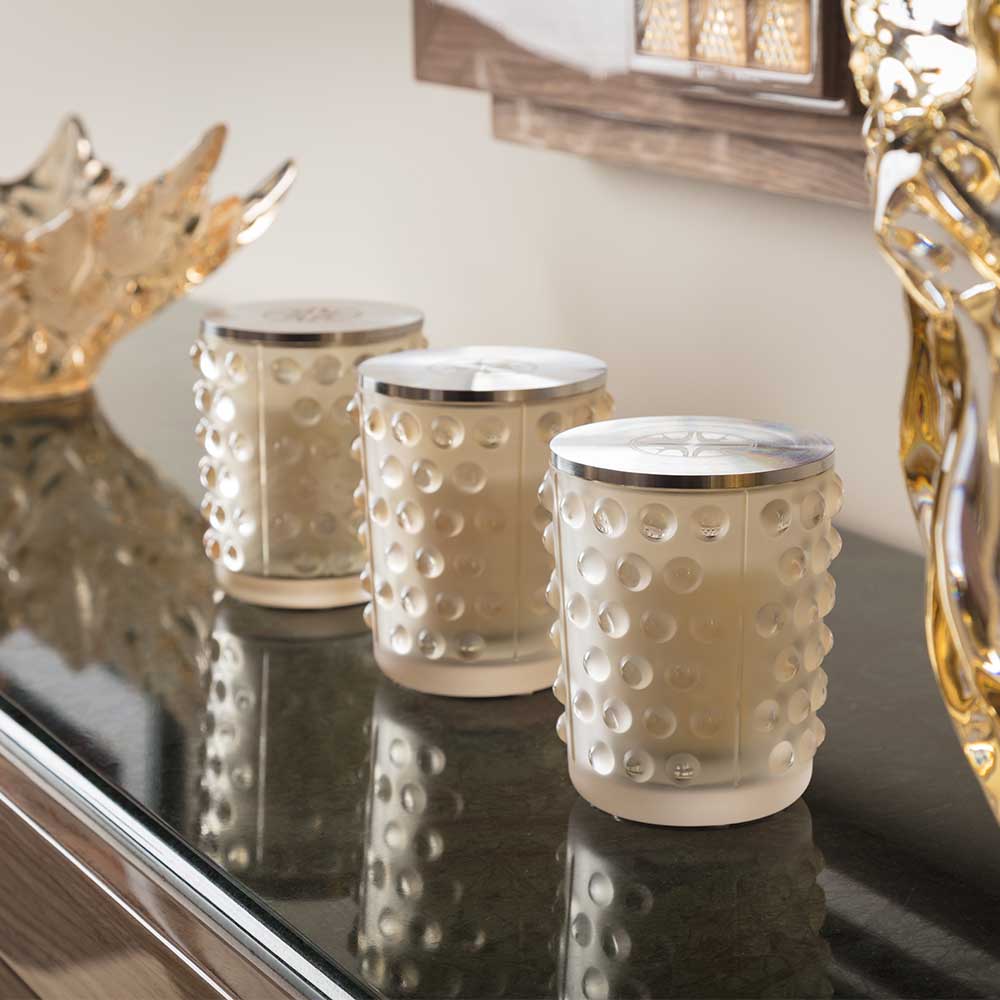 Kaleidoscope effect, creative genius, technical prowess, the Mossi vase is an ideal, a perfect synthesis of modernity in fine arts. Originally created by René Lalique in 1933 in clear glass, this emblematic piece is today reinterpreted in the candle vase and transfigured through gold luster crystal, sparkling and hypnotic.