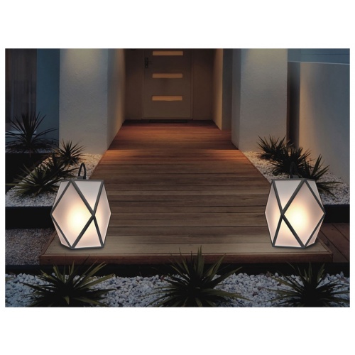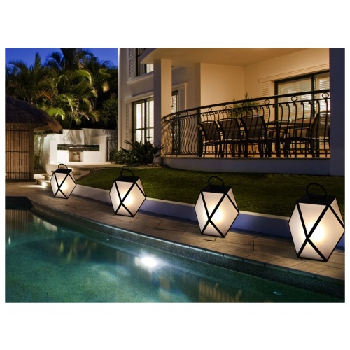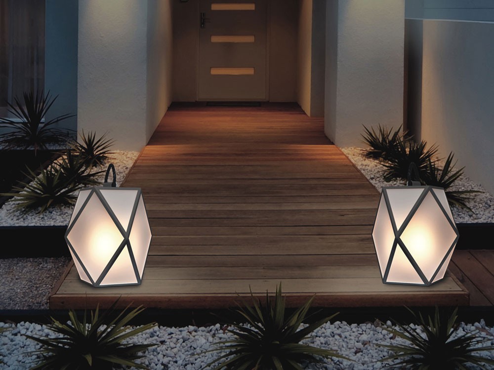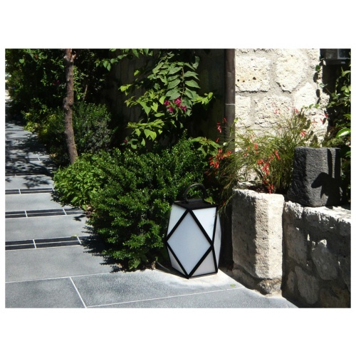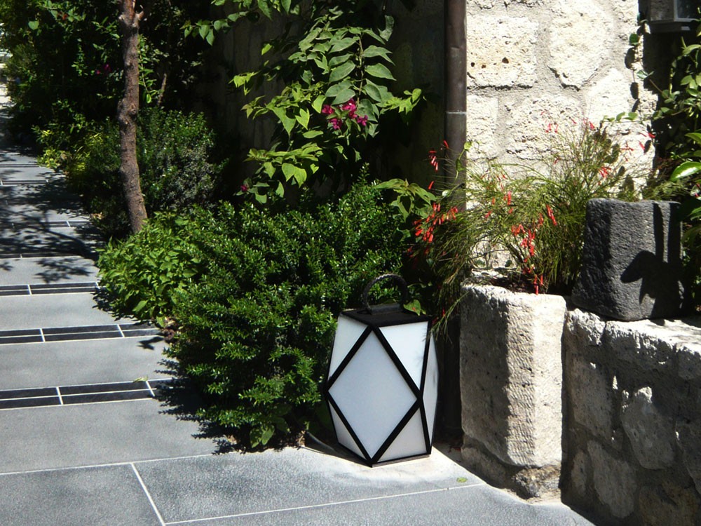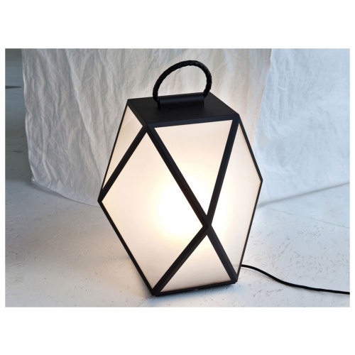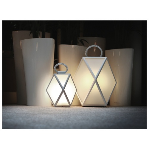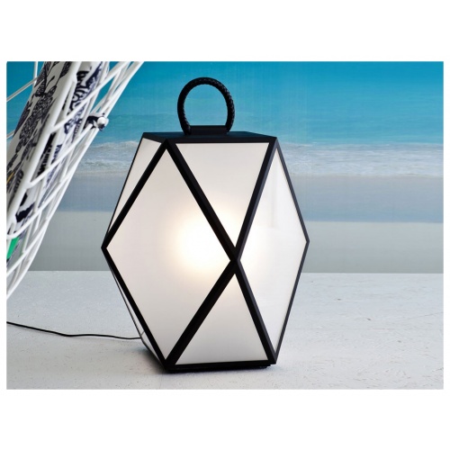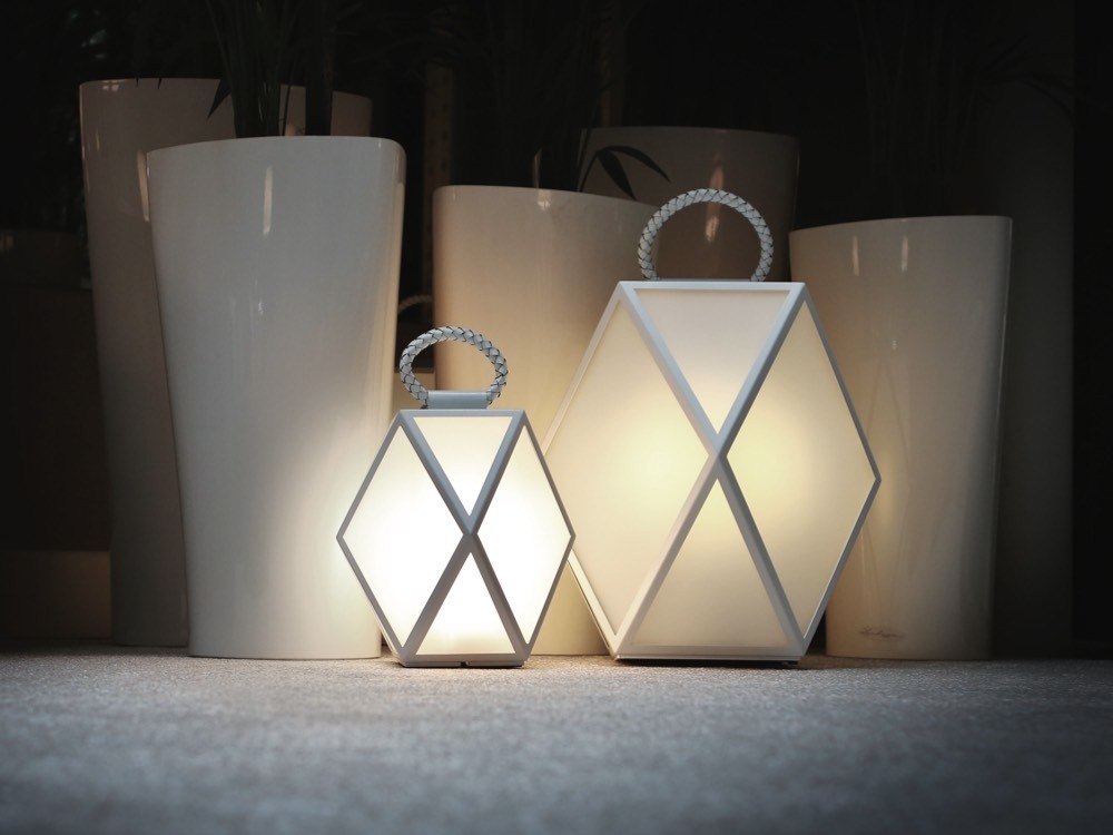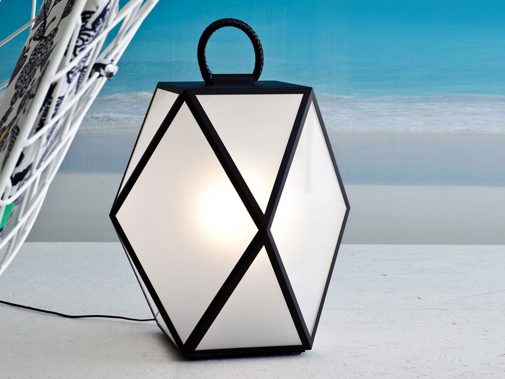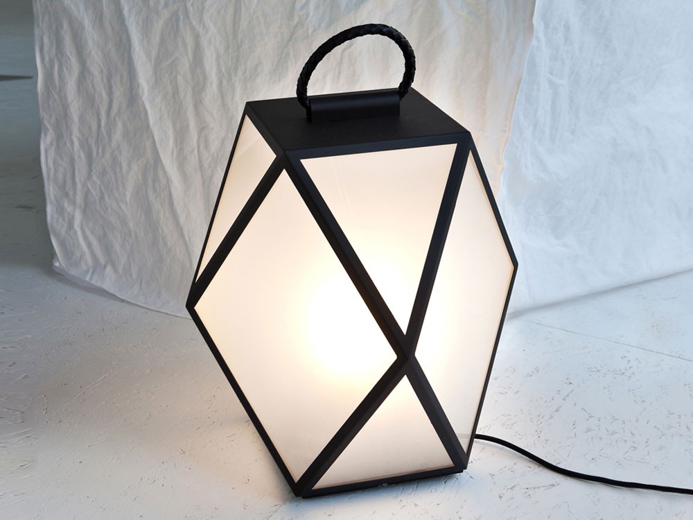 Lantern with an original design and precious details, like the braided leather handle, for an exclusive and refined space.