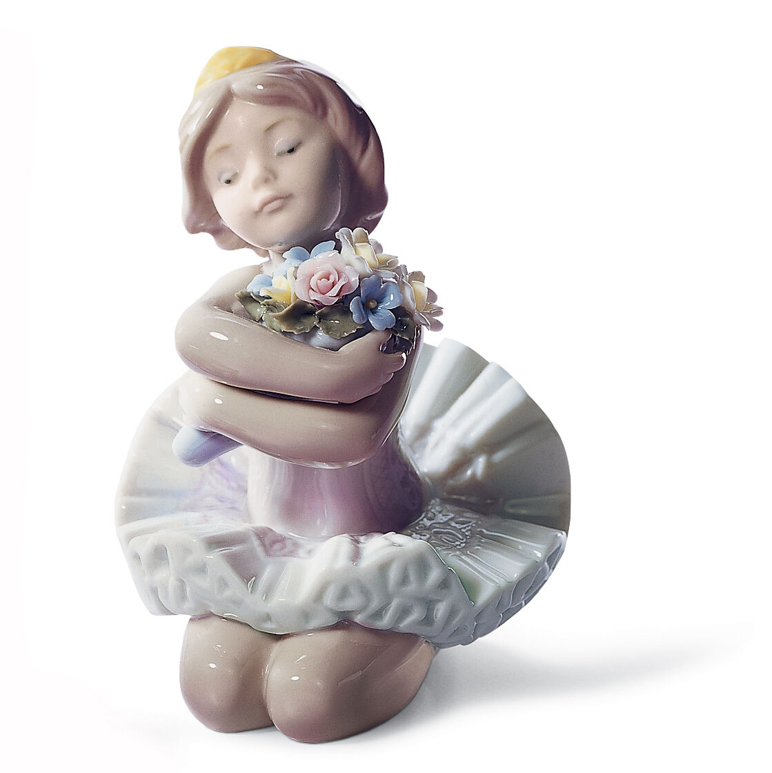 Her debut has been a resounding success. The audience have loved the performance, it has drawn thunderous applause and she has even been thrown a beautiful bouquet of flowers. A glossy porcelain piece, the perfect gift to a dancer.