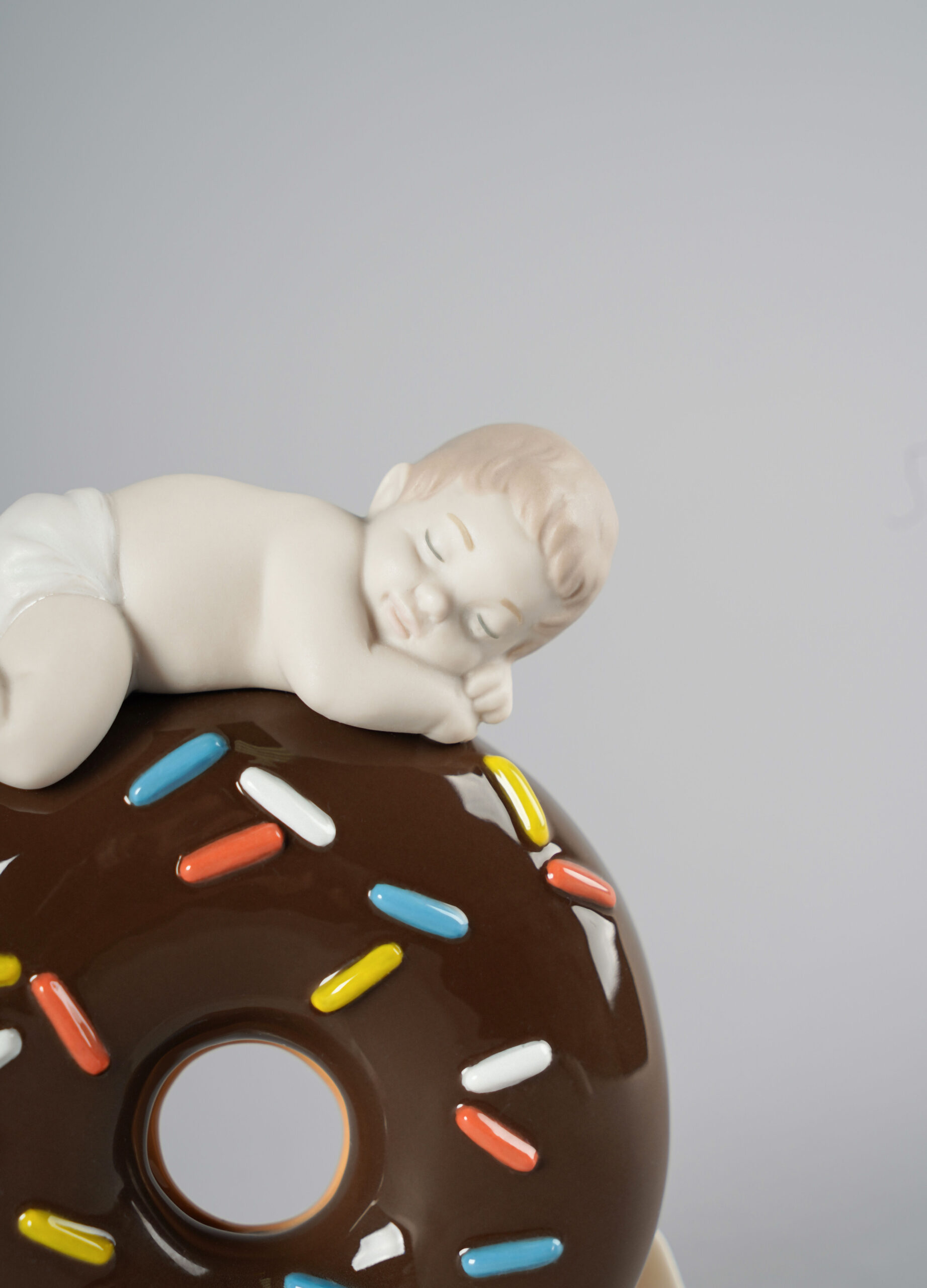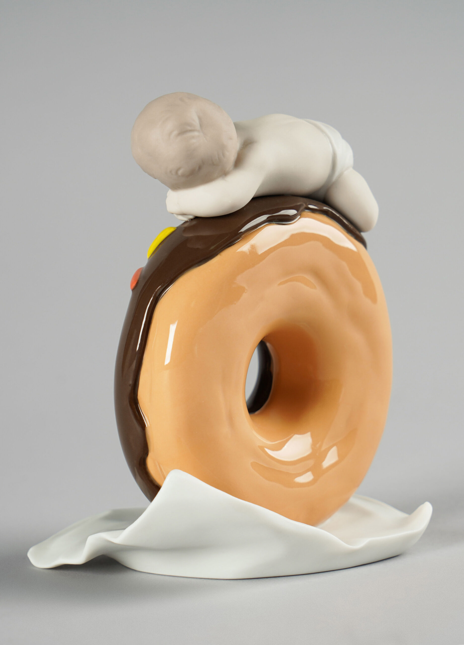 A piece mixing glazed and matte porcelain, decorated with intense tones meticulously applied by hand. A creation that combines tenderness with humor, making it an ideal gift for a newborn baby as it can be personalized in the space available for this purpose on the base. Handcrafted in Spain.