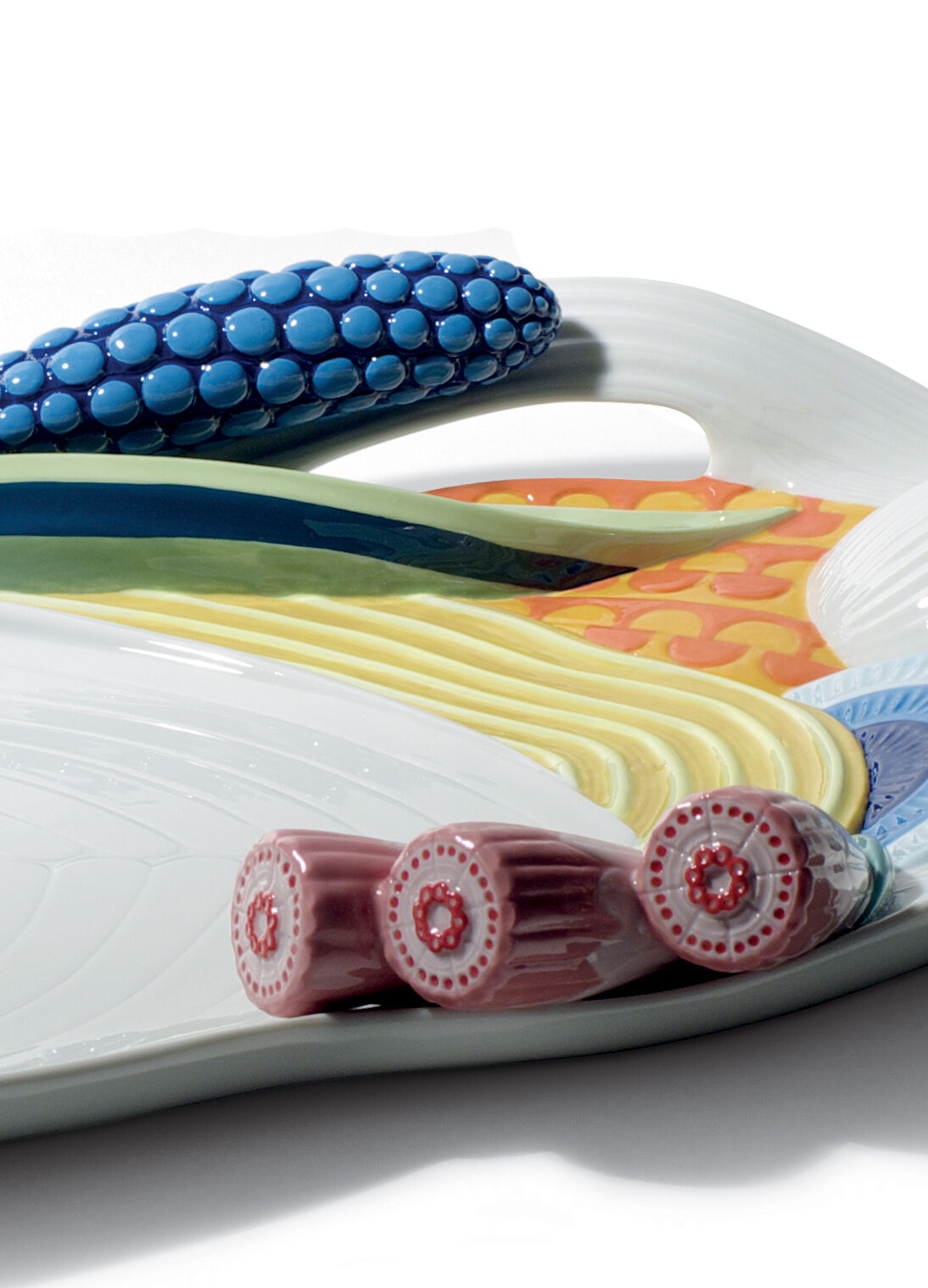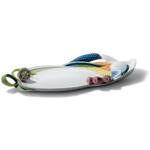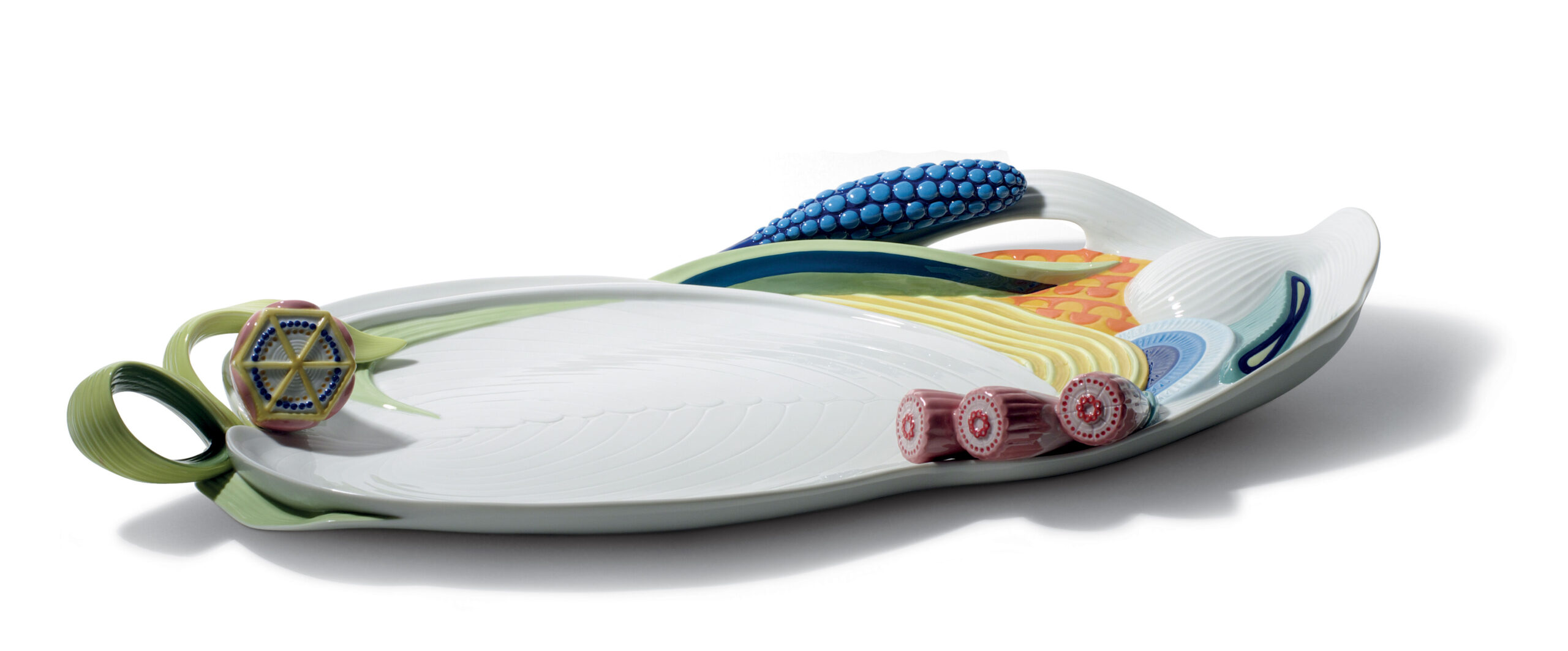LladrĂ³’s Naturofantastic collection is inspired by lush plant forms to create a luminous and warm fantasy, a celebration of the joy of life. This tray is part of a stylish set of dishes in which the organic and the fantastic, the marine motifs and the vegetables converge in an exclusive piece of L’Art de la Table.