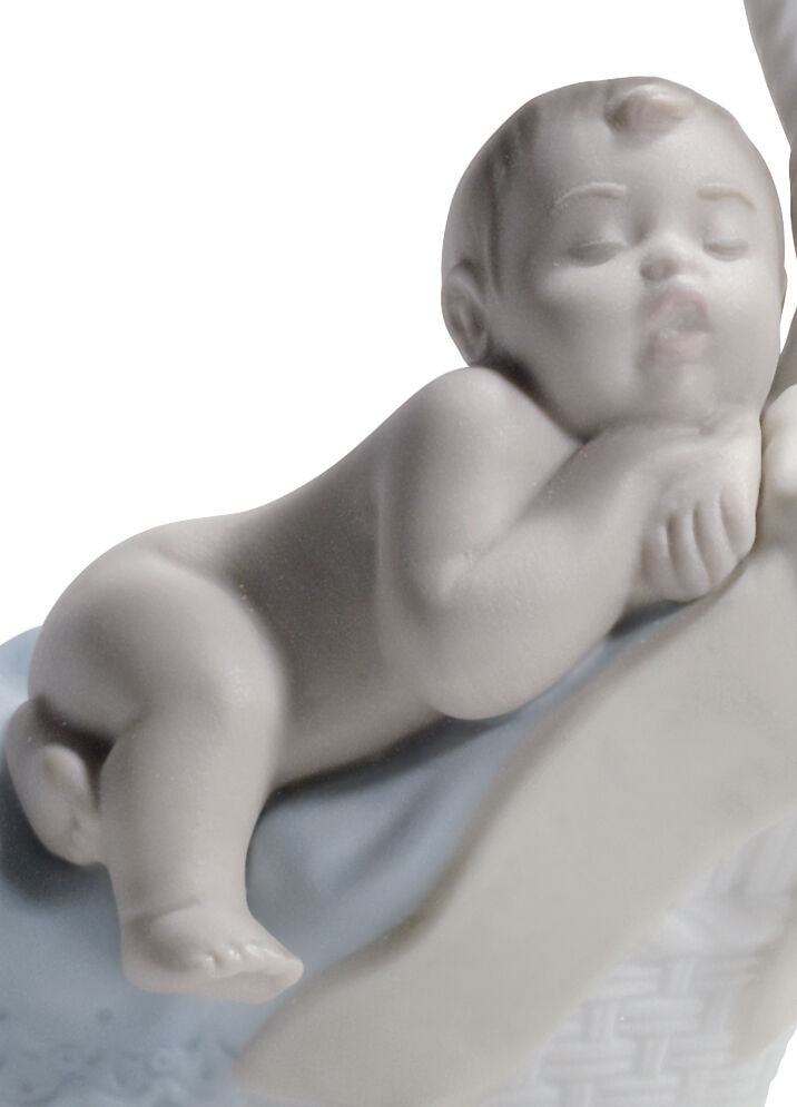 He is their new-born baby, the joy of the whole family, a gift from heaven. Everyone is happy and they cover him with kisses and affection. A glossy porcelain piece, finished in soft pastel shades, ideal as a gift to parents or to celebrate the birth of a new-born.