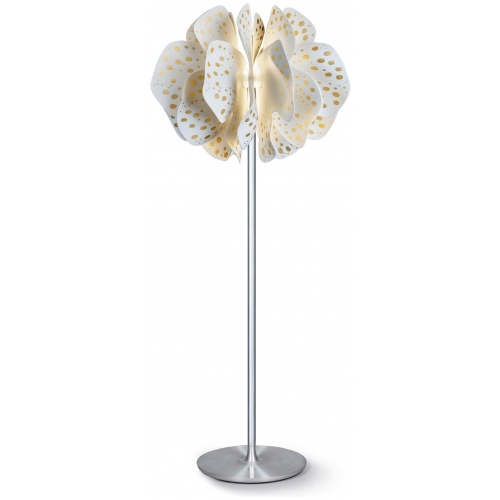 The petals of the lamp are made in white matte porcelain decorated with details in golden luster. The rest of the components are aluminum and zinc-plated steel. A contemporary design with great decorative potential, handcrafted in the LladrĂ³ workshops in Spain.