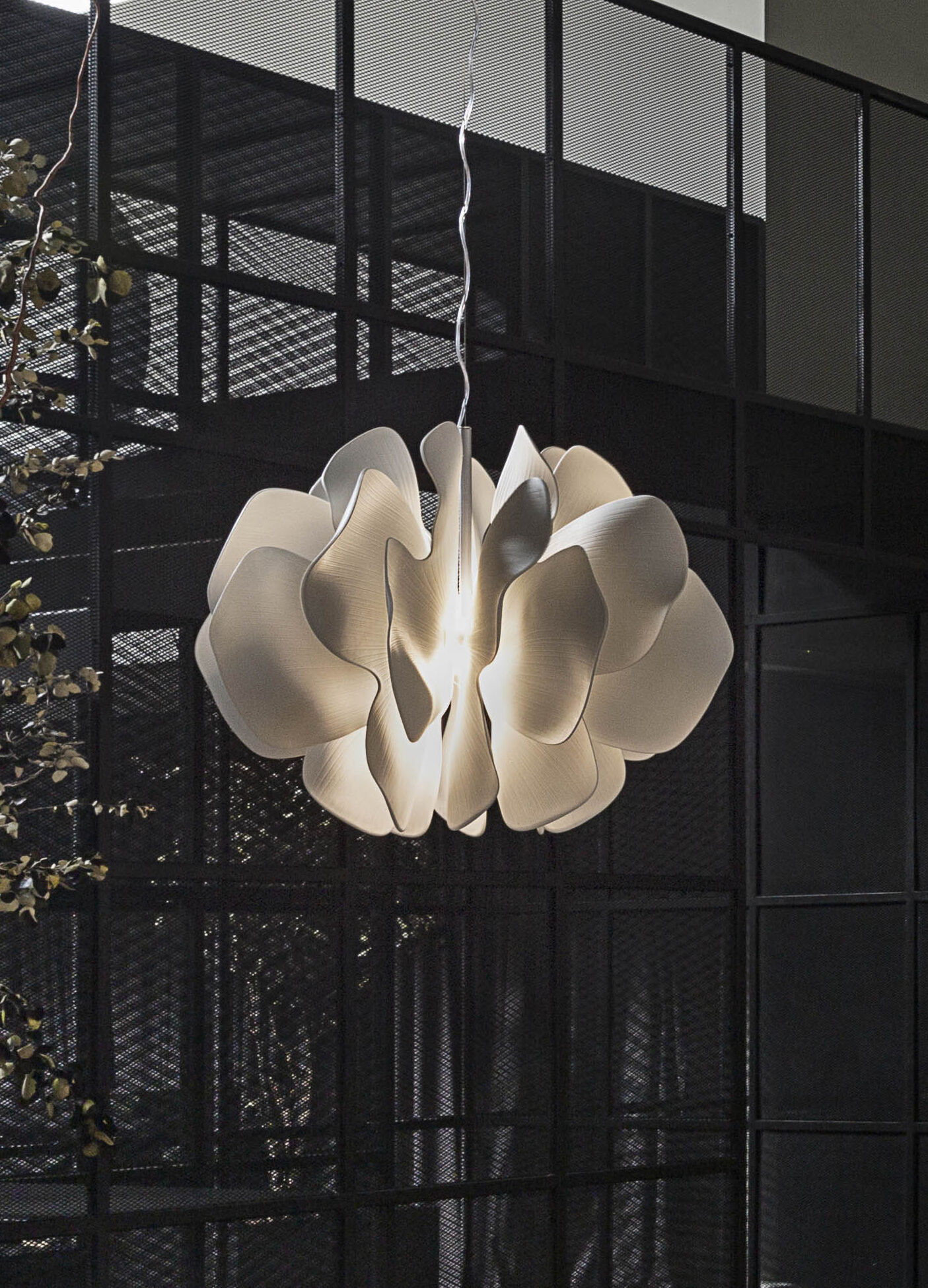 This work is part of the lighting collection created by Marcel Wanders in partnership with LladrĂ³. A novel, contemporary design that stands out for its ever-changing organic forms inspired by nature and for the fascinating effect that the light emanating from inside produces in the petals. A piece of great decorative potential, handcrafted in Spain.