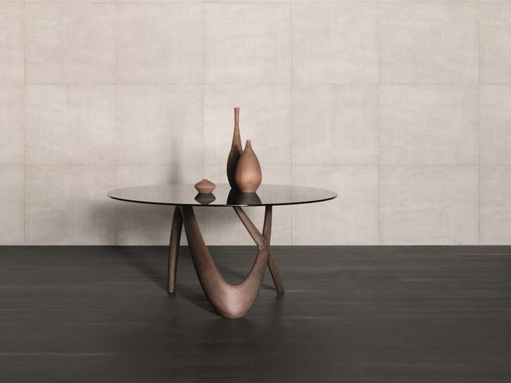 NX is a structural design whose name derives from its unique shaped base. Formed with a completely new creative approach, NX is a distinctive lightweight design finished with a sleek round crystal pane glass top.
