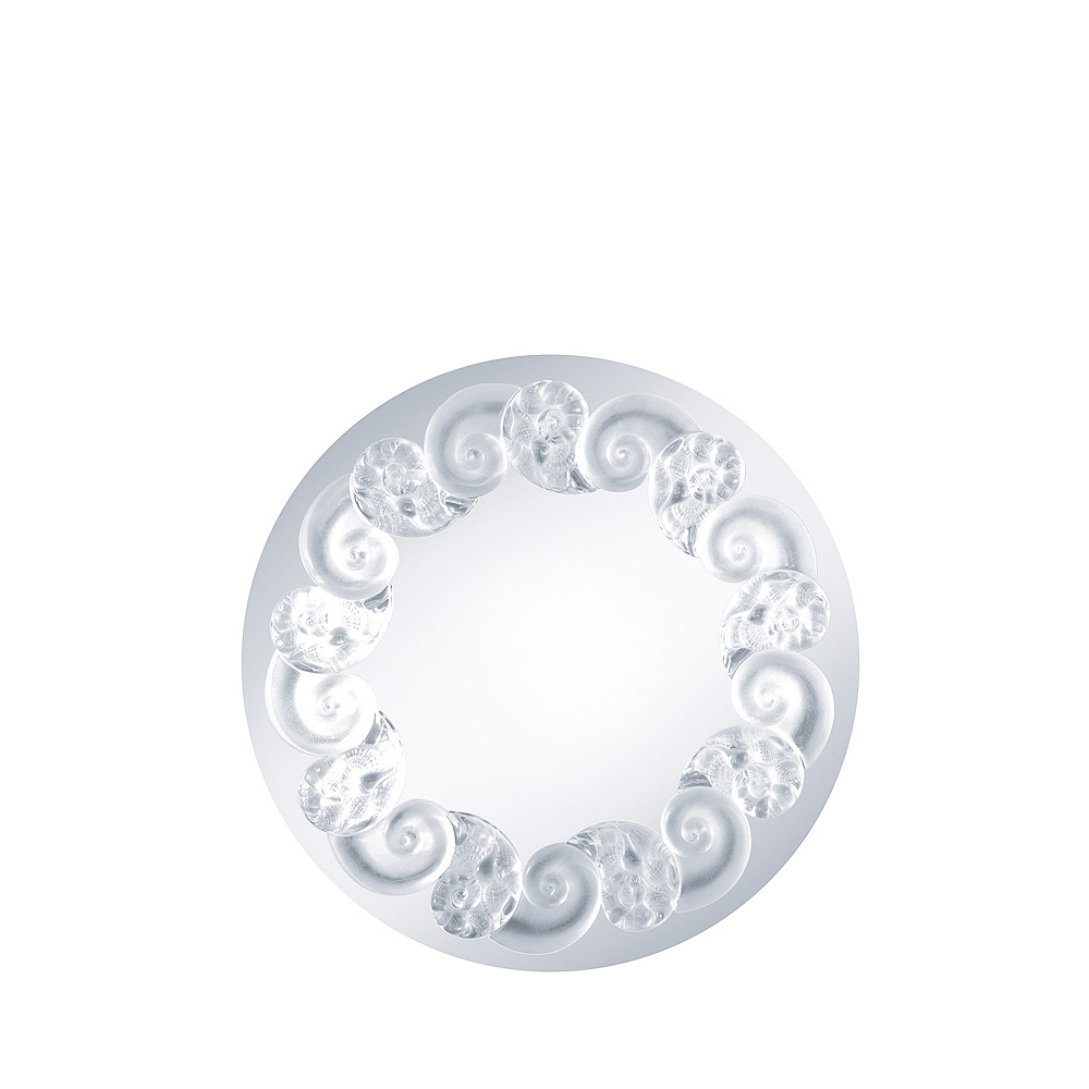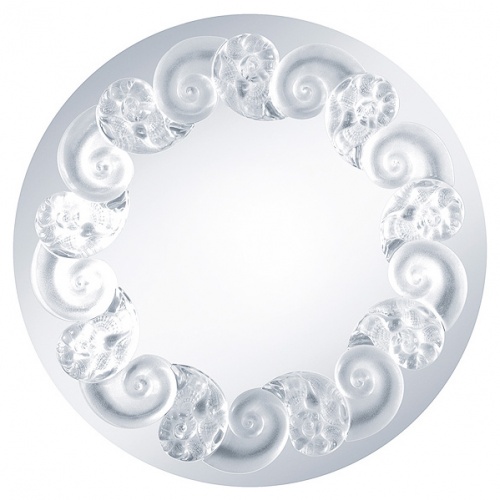 The Conches in satin crystal around this mirror seem to float on shimmering water.