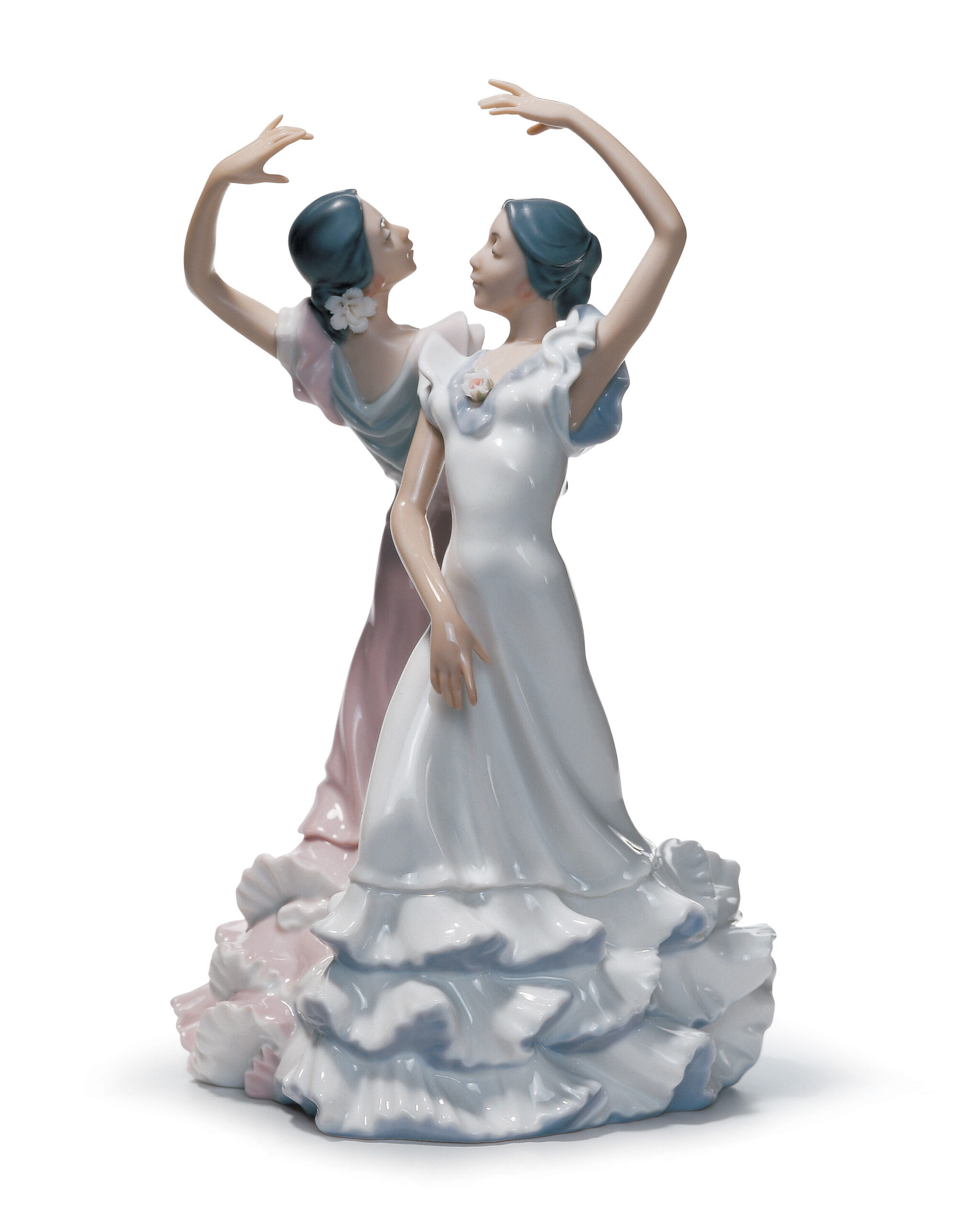 The vibrant and cheerful dance typical of the Andalusian capital, rendered in all its grace, movement and vitality. A glossy porcelain piece, finished in soft pastel colours, perfect as a gift, collectible, decoration or as a souvenir of a trip to Spain.