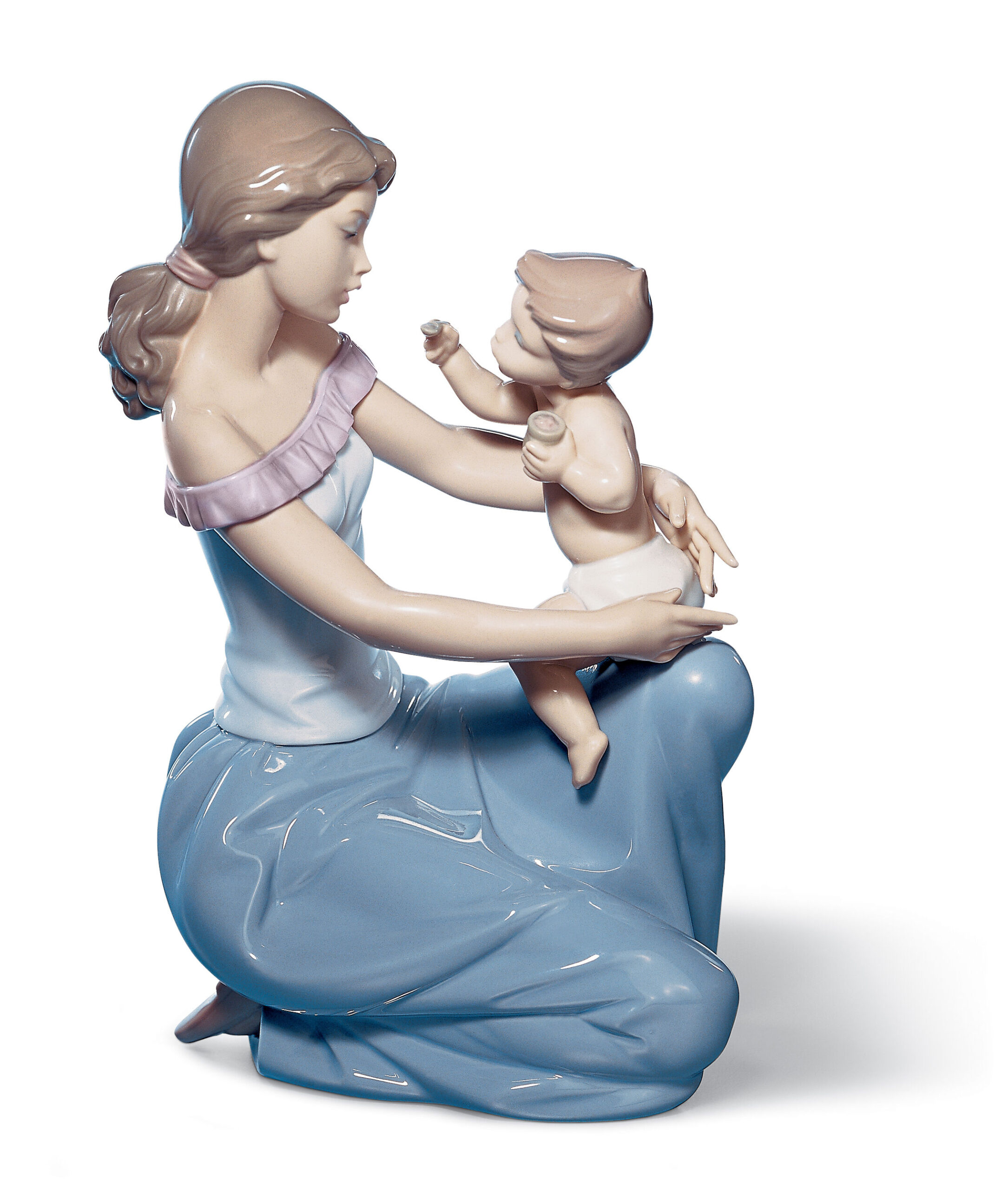 Love, tenderness and fun. There is no greater bond, no greater understanding than that between a mother and her child. A glossy porcelain creation decorated in soft pastel colours, perfect as a gift, a collectible or a decoration.