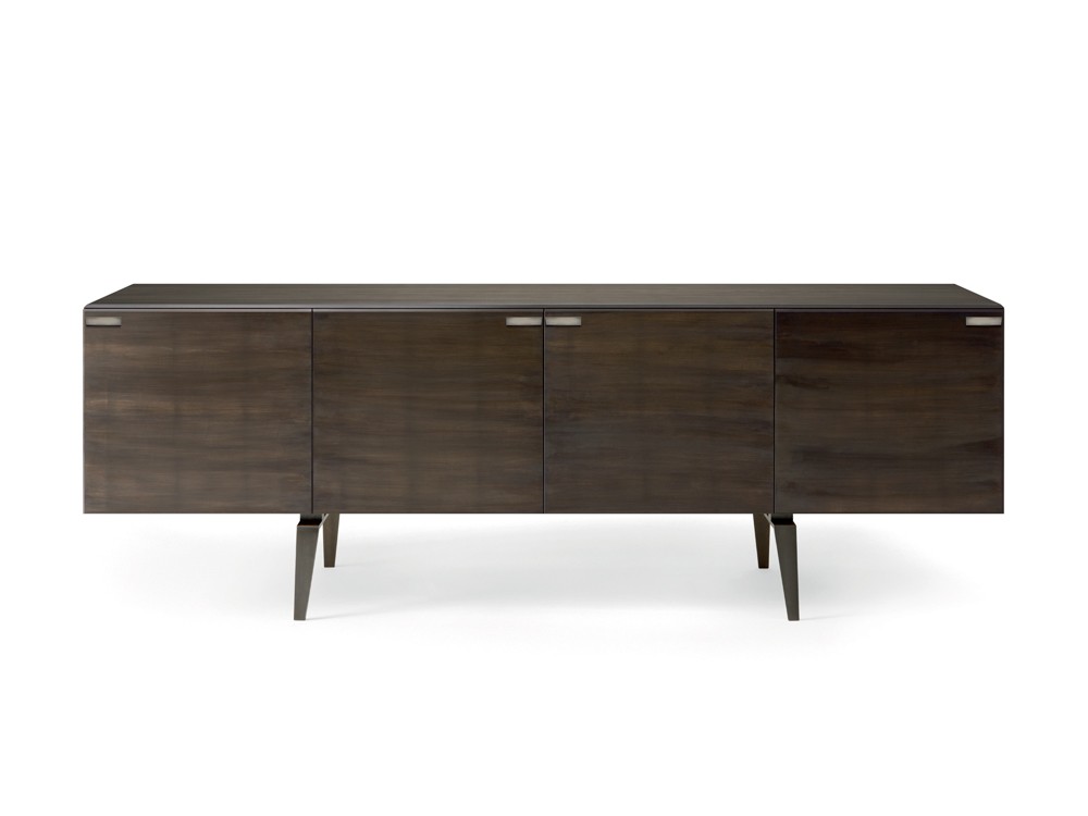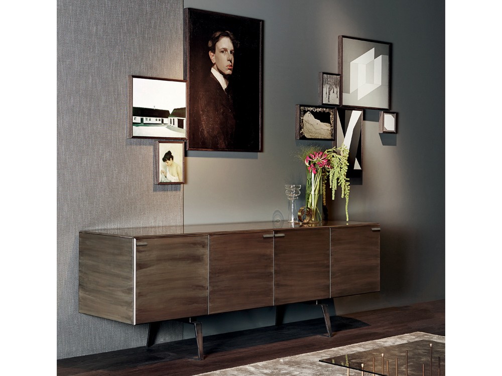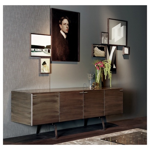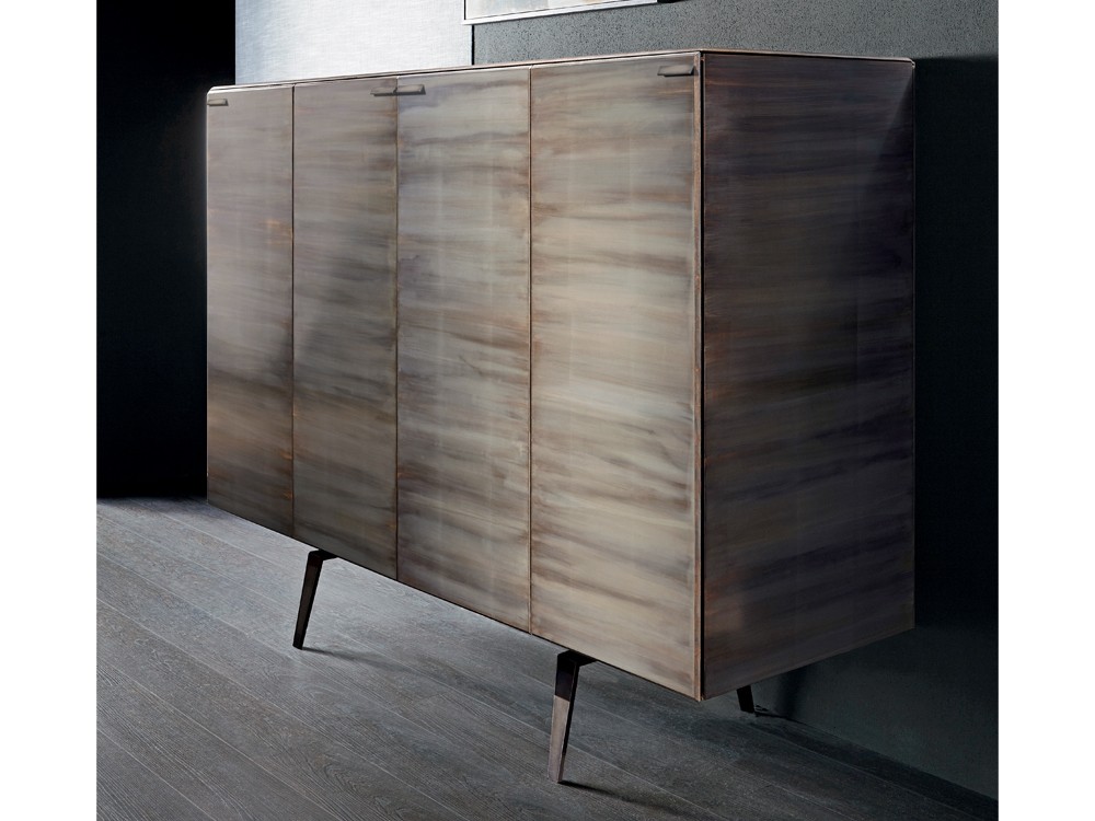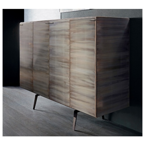 Unique hand finished sideboard in tempered glass covered by gold leaf, which has been applied with an exclusive system. Collection in numbered edition.