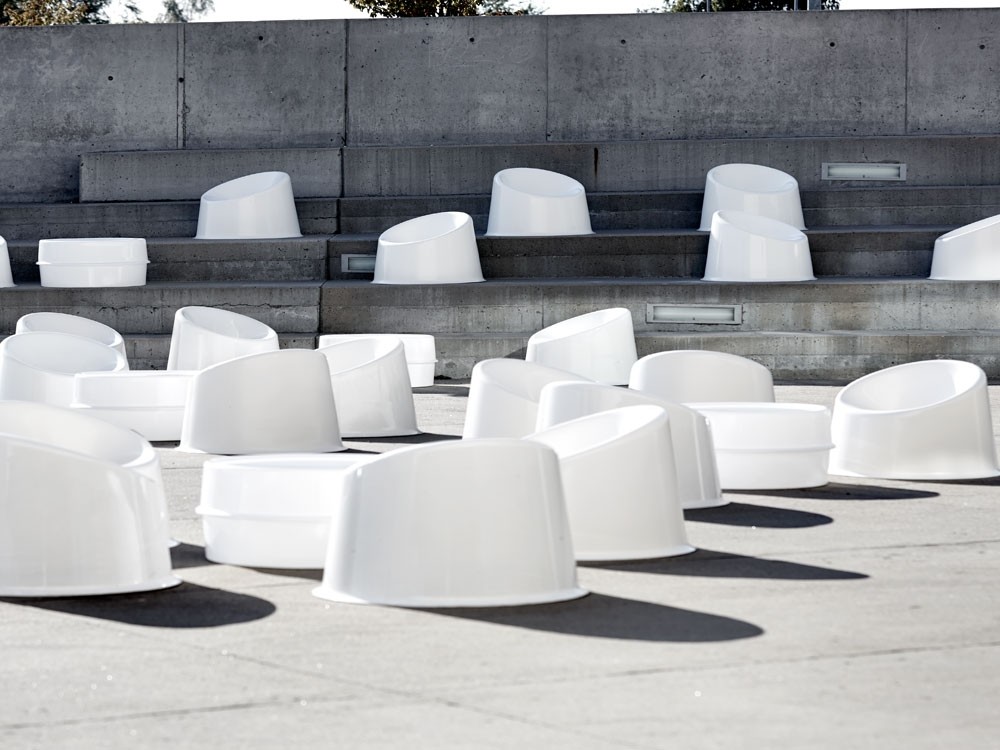 Designed by Verner Panton, Panto Pop is a trendy stackable lounge chair that can be integrated into indoor or outdoor environments.