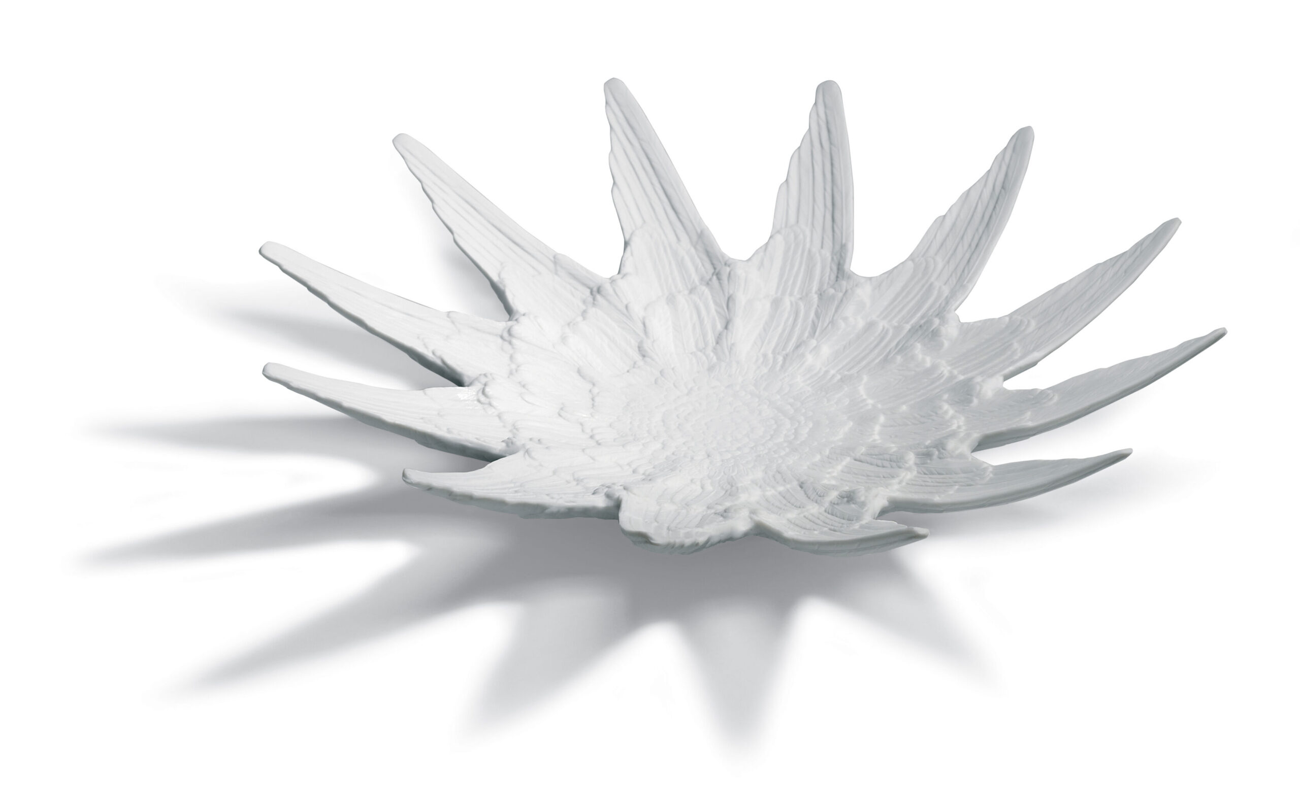 Based on traditional LladrĂ³ feathered wing elements, this amazing centrepiece is a great triumph of the detail and skill involved in creating an LladrĂ³ product. The strong sculptural natural shape of this beautiful bowl will be the perfect addition to any tabletop. Available in matte black gres and matte white porcelain.