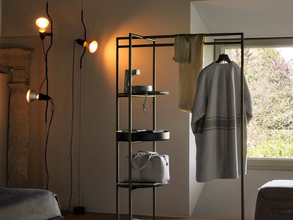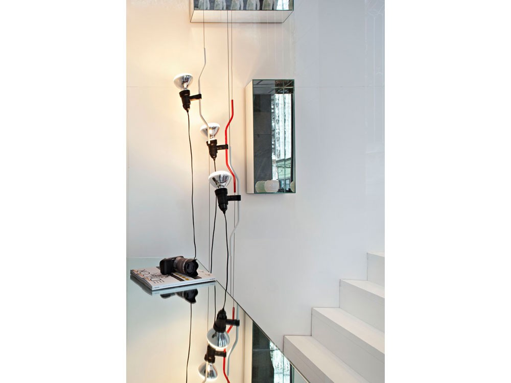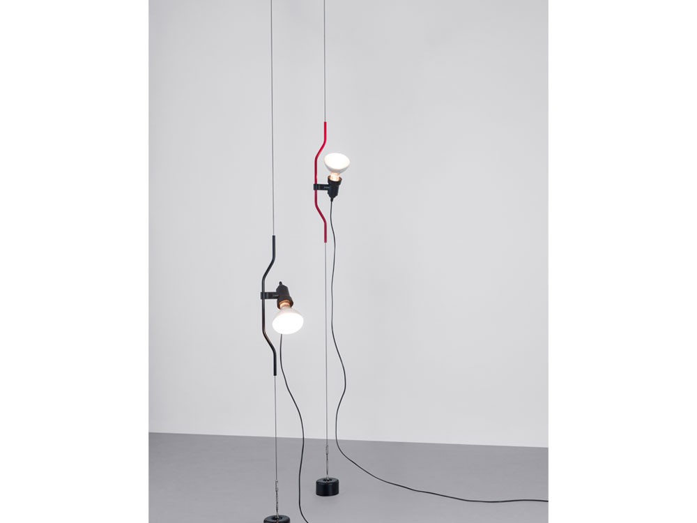 A smart design originally created by Pio Manzù, Parentiesi features a smart fixture that moves up and down along a steel wire. As the steel tube is bent it creates friction and enables the lamp to be in position without screws.