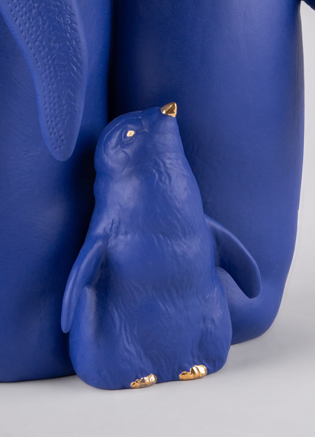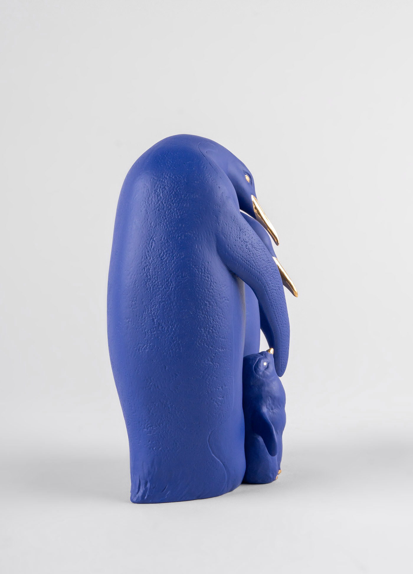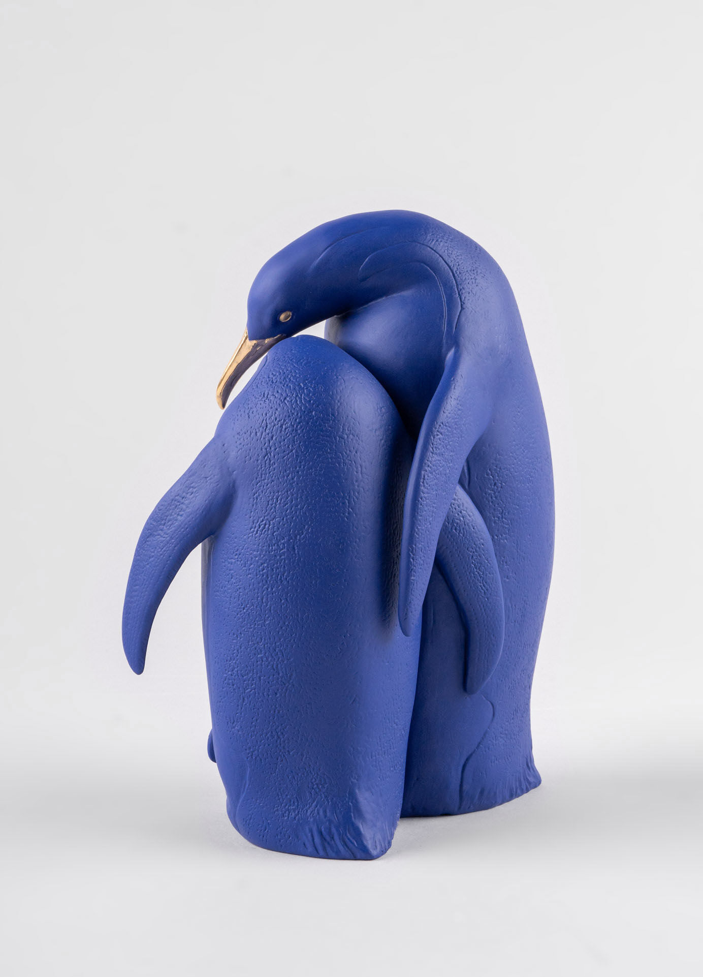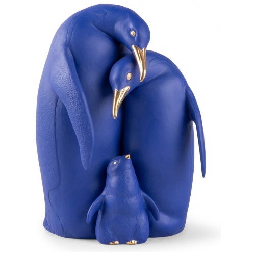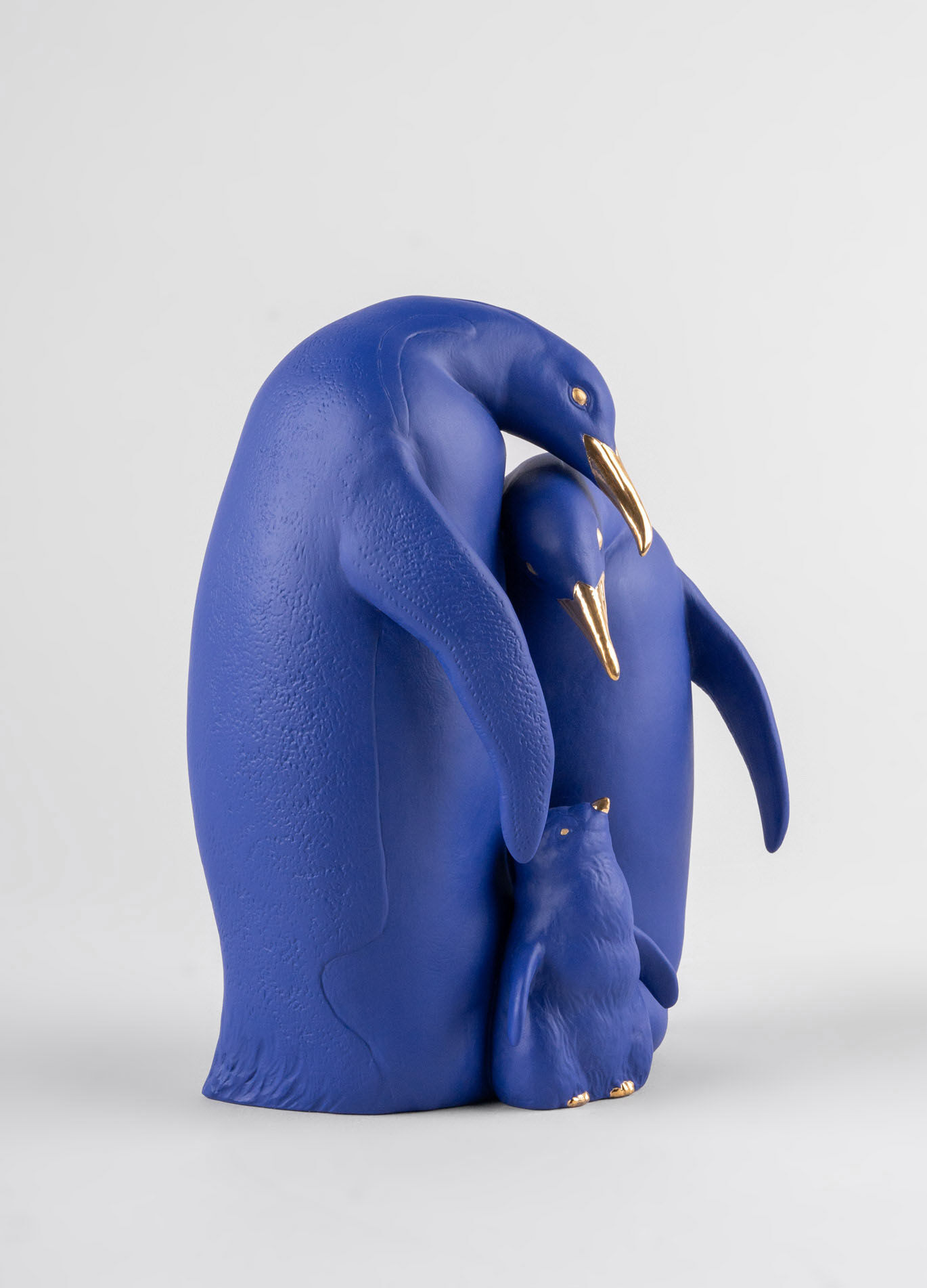 Penguin family Sculpture. Limited Edition. Blue and Gold