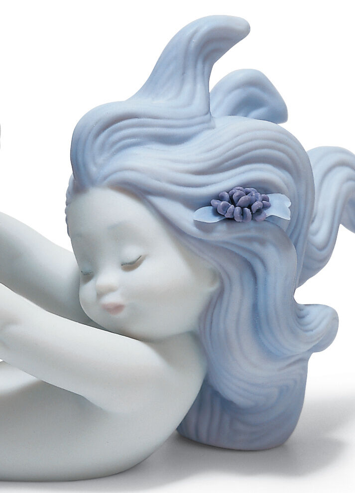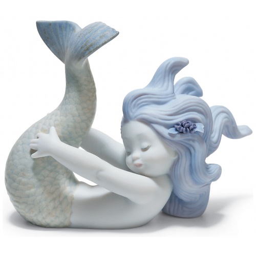 This sweet mermaid resting gracefully at the bottom of the ocean transports us to a world of underwater fantasy that’s full of wonder. A matte porcelain piece, decorated in soft pastel colours, perfect as a gift, collectible or decoration.