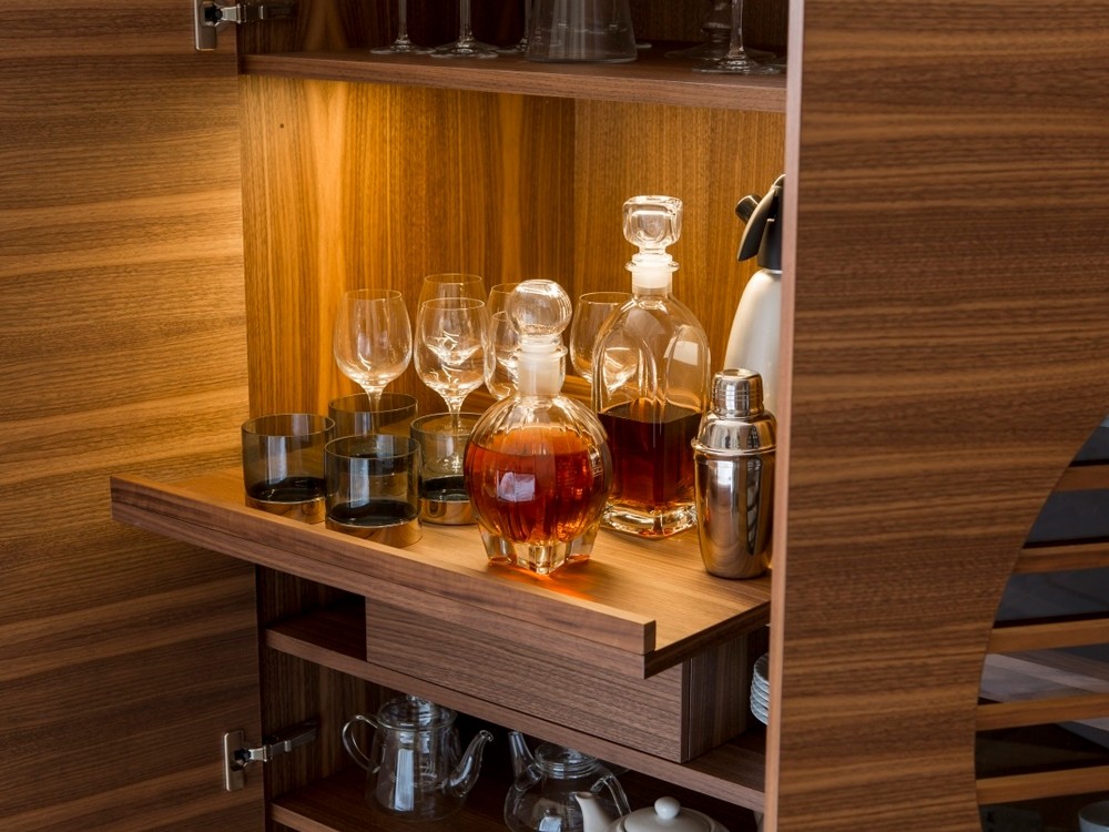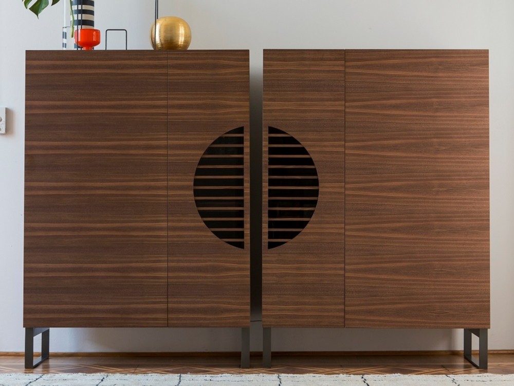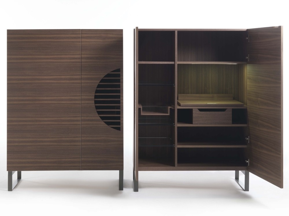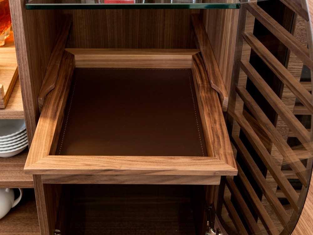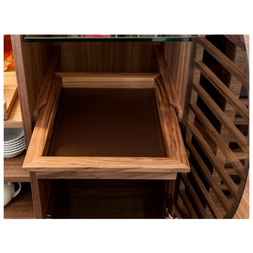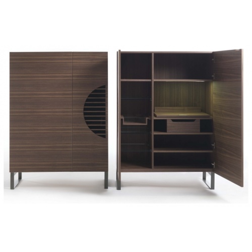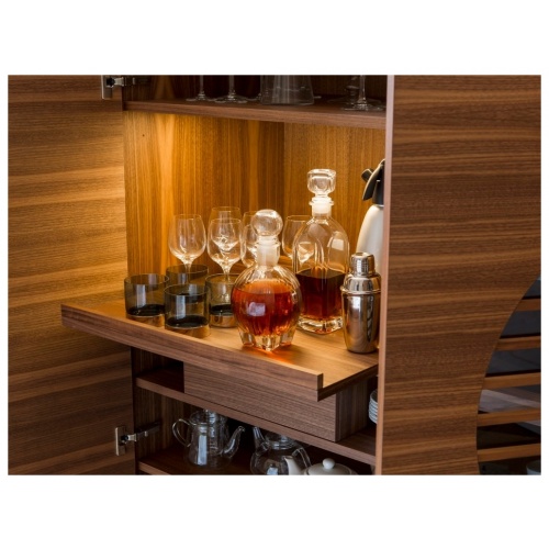 Combining contemporary style with classic Italian craftsmanship, Porada’s Polifemo Drinks Cabinet offers both form and function in and extraordinary way. Expert workmanship has resulted in the handles being carved directly into the beautiful canaletta walnut doors- the outcome being a piece that offers an enticing glimpse into its interior.