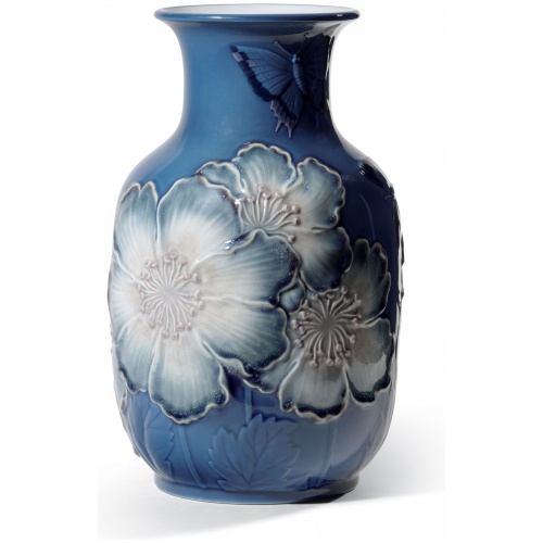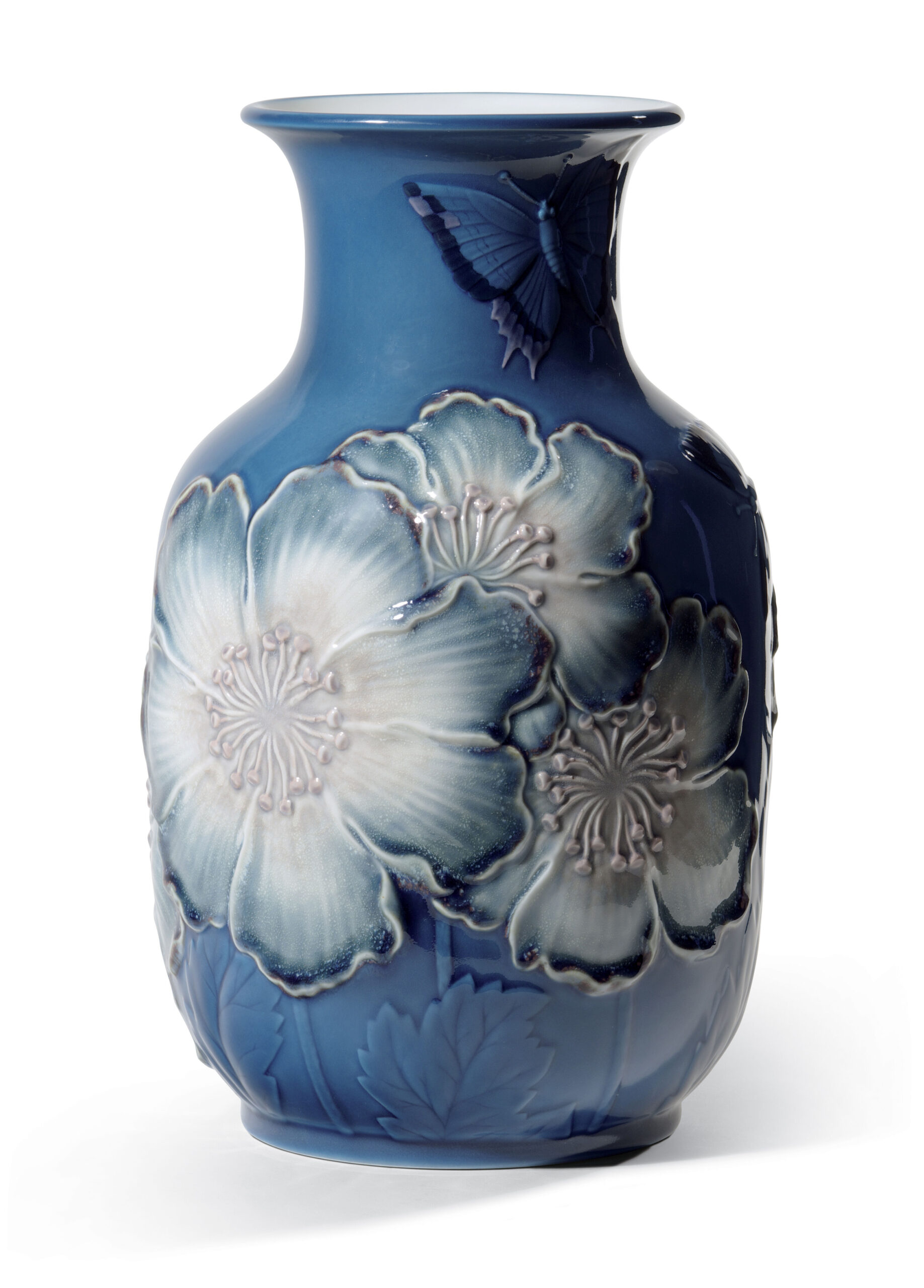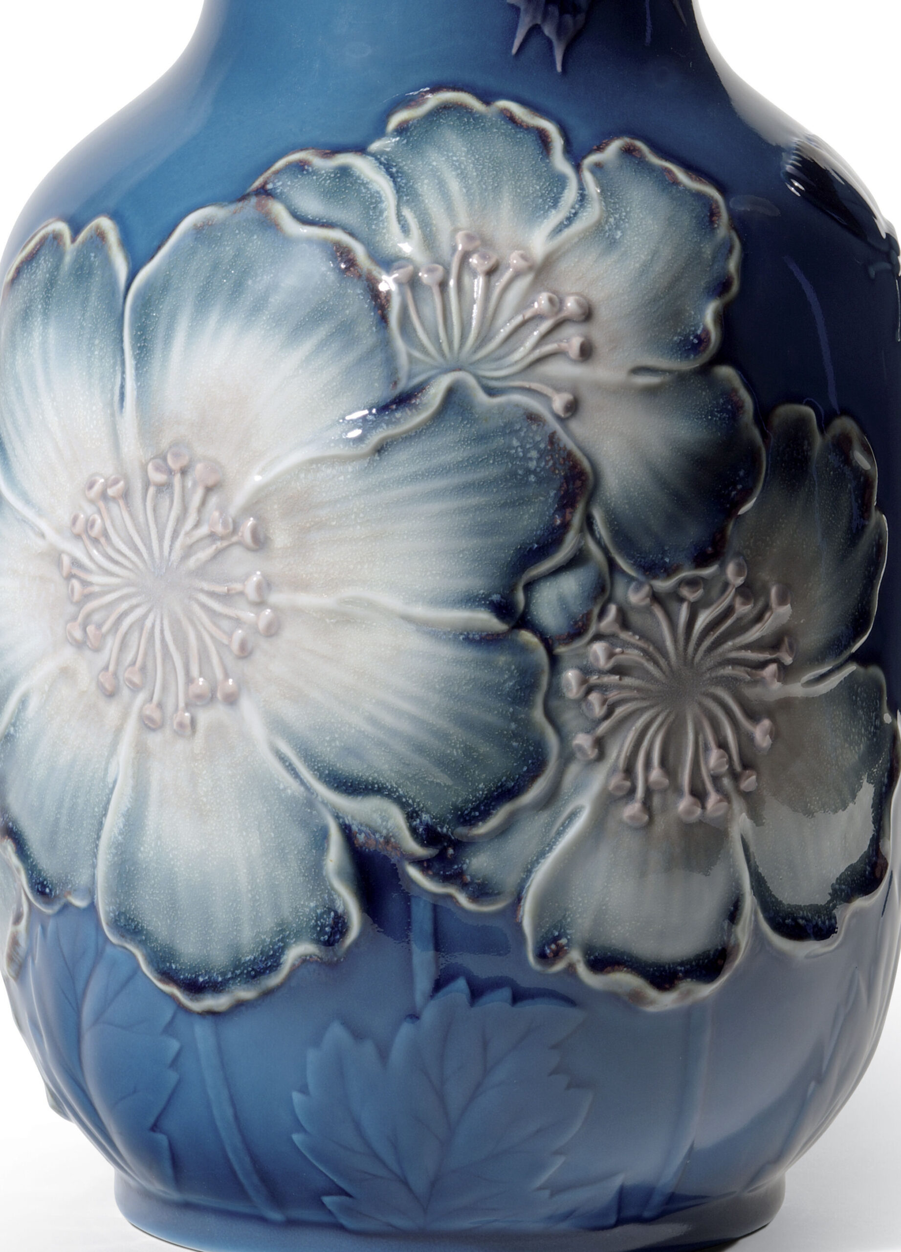 Poppy Flowers Tall Vase. Blue. Limited Edition