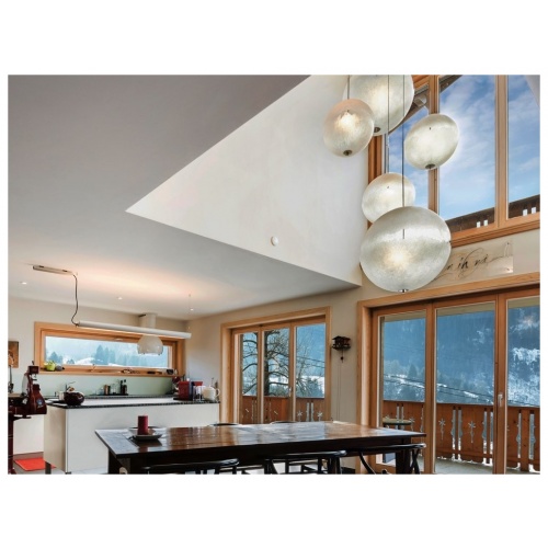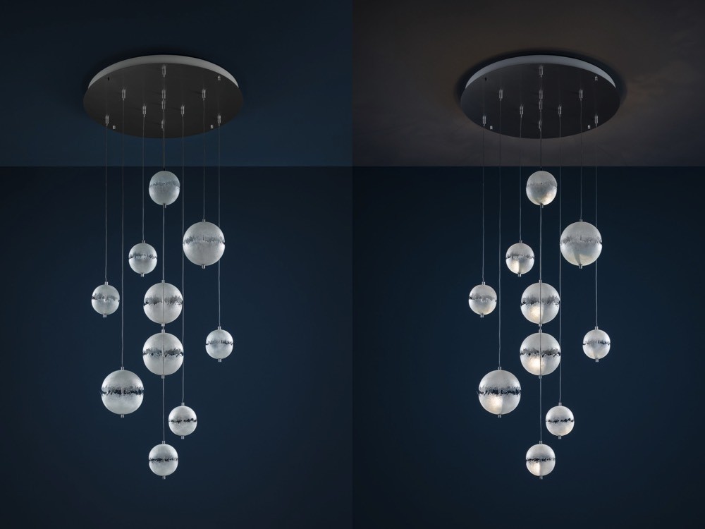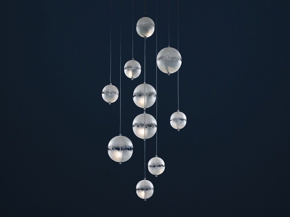 The PostKrisi collection celebrates Enzo Catellani’s fascination with beautiful fibreglass forms. This particular chandelier features a selection of stunning hemispheres, each a mini universe of light and luxury.