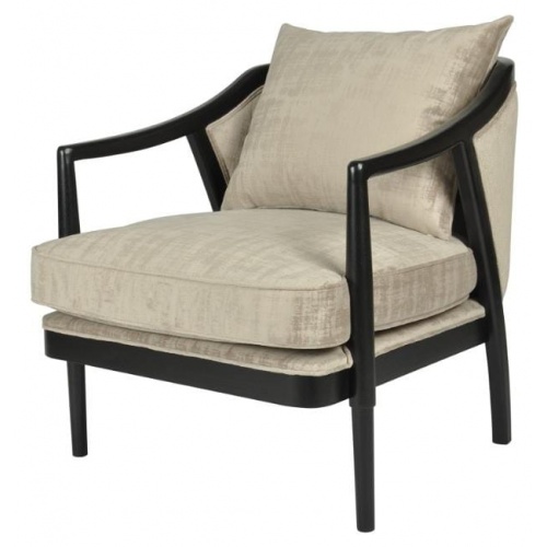 This comfortable chair has a subtle fabric combination, that lends texture to the piece. The dark finish frame highlights the shaping.
