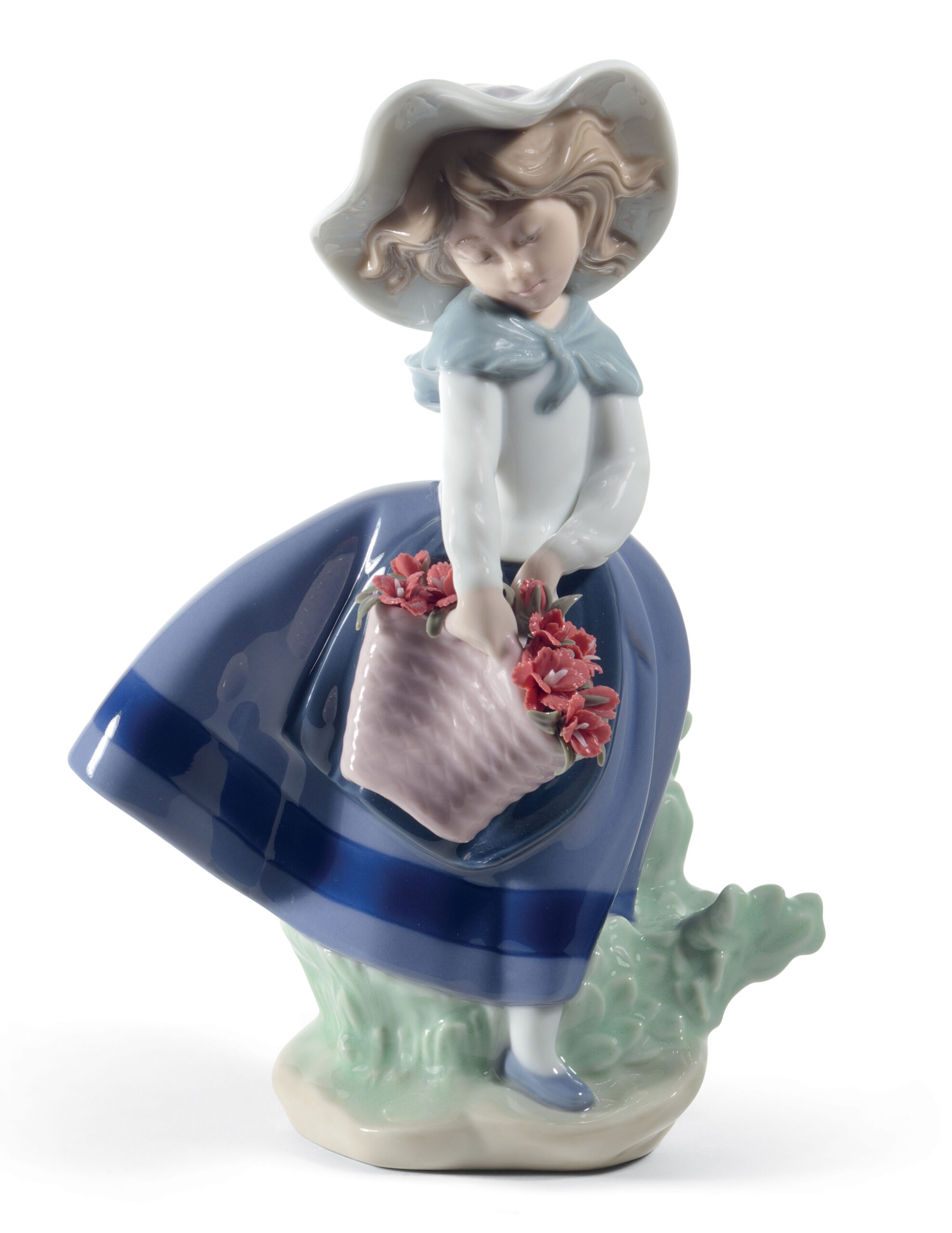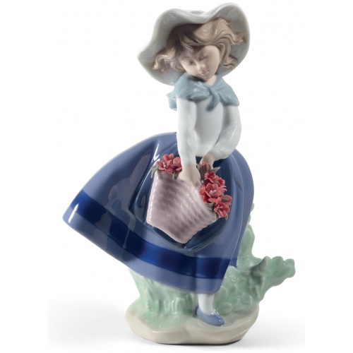 Girls with flower baskets are one of the most popular classic themes by LladrĂ³ and this Pretty Girl with Wicker Basketis one of the most outstanding examples. A piece of glossy porcelain, decorated in soft pastel colours and with a beautiful bouquet of carnations, crafted petal by petal by the brand’s expert artists.