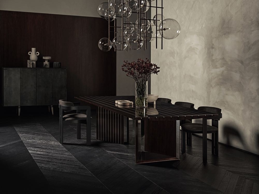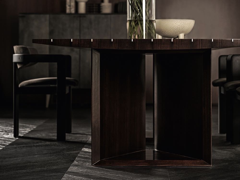 Prism is a sculptural and stylish modern dining table. The Indian Rosewood is riven through with aluminium details that create a wonderfully textured surface in an ode to Gallotti & Radice’s trademark love of detail.